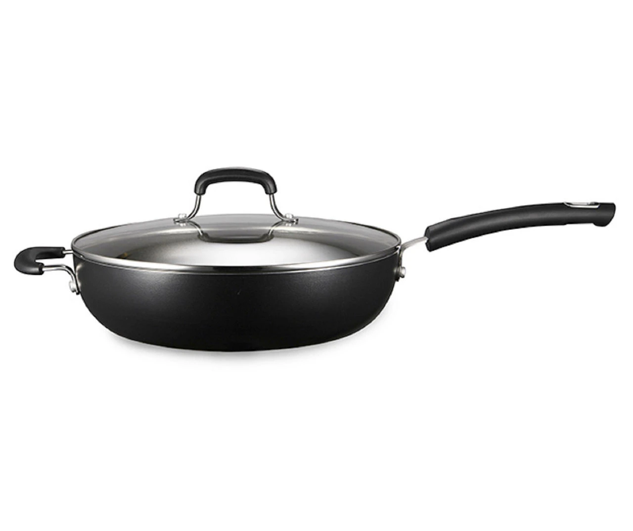 Bring sleek and functional style to your kitchen with this jumbo cooker from Real Living. With a classic Teflon non-stick coating and a black color, this round cooker brings a high quality build with amazingly even heat distribution to your kitchenware collection.