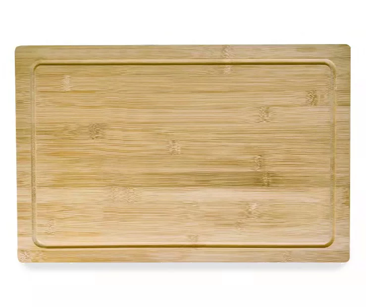 A natural beauty in looks and function, this woodgrain cutting board has a carved perimeter to collect juices from your cooked meats, fresh fruits and roasted fish. Use it as a cutting board or serving platter.