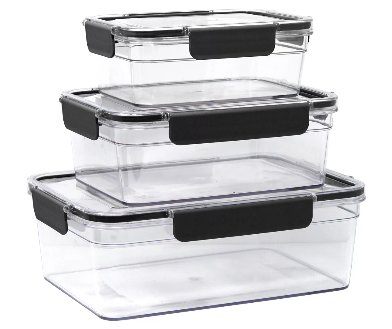 Add everyday freshness to leftovers, ingredients and storage with this coordinated set of sealing containers sporting a clear design for effortless organization. Thanks to the airtight seal and varying sizes you can reliably extend the life of any surplus in the kitchen.