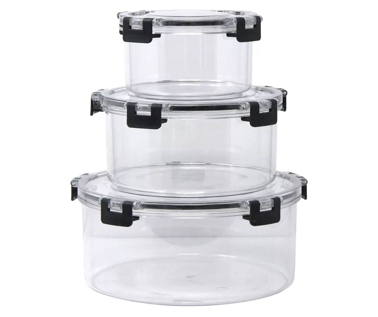 Add everyday freshness to leftovers, ingredients and storage with this coordinated set of sealing containers sporting a clear design for effortless organization. Thanks to the airtight seal and varying sizes you can reliably extend the life of any surplus in the kitchen.