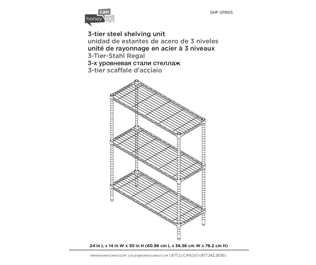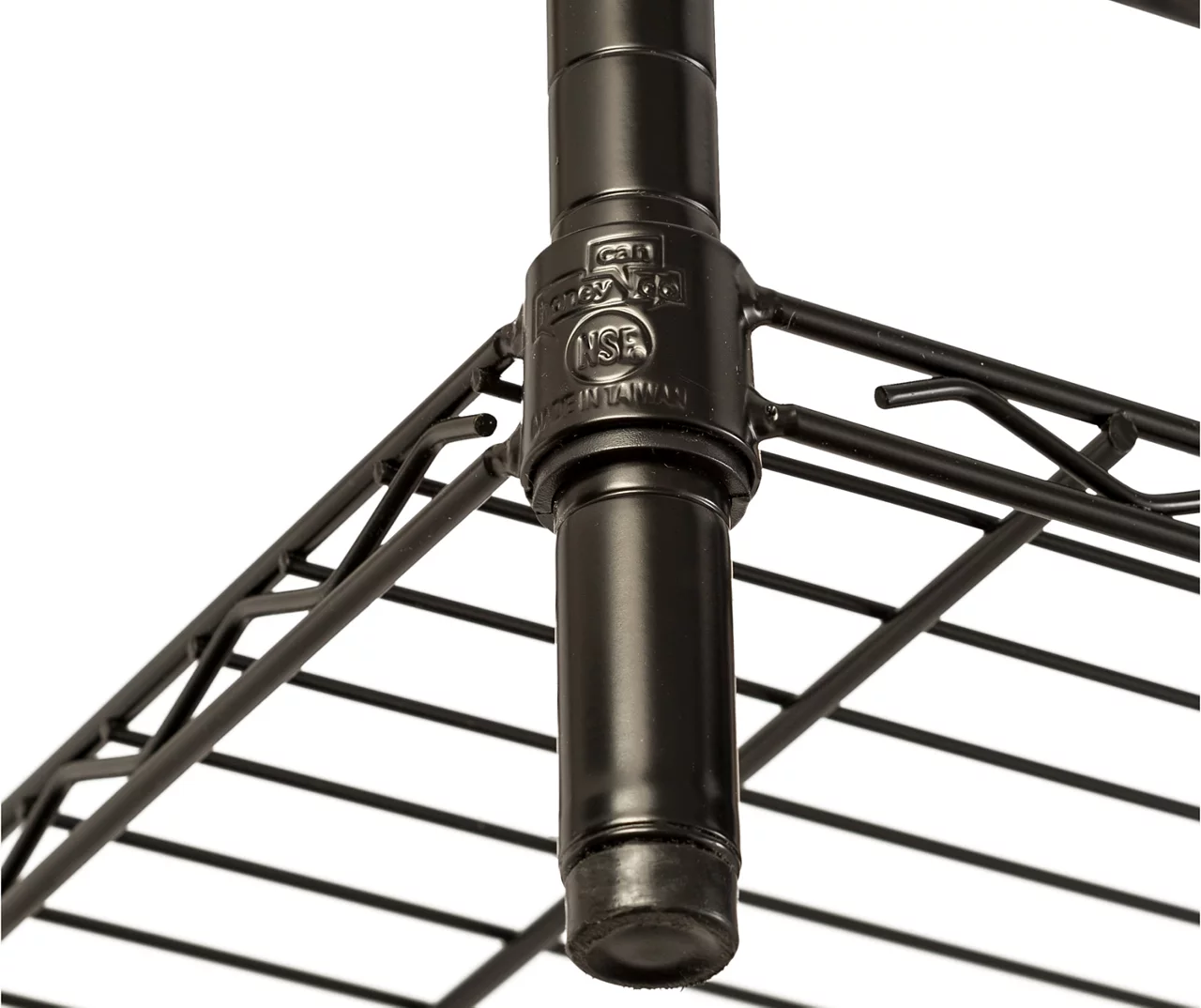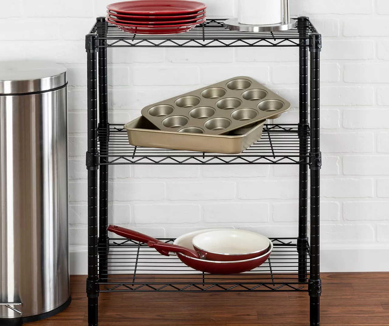 Restore order to your space with this three-tier heavy duty adjustable shelving unit. Its commercial-grade durability is tough enough for any of your kitchen shelving needs or to tame your wardrobe gone wild, while its steel grated shelves allow your garments plenty of breathing room. Easy to assemble and versatile, this adjustable shelving unit also straightens up messes in your basement or garage.
