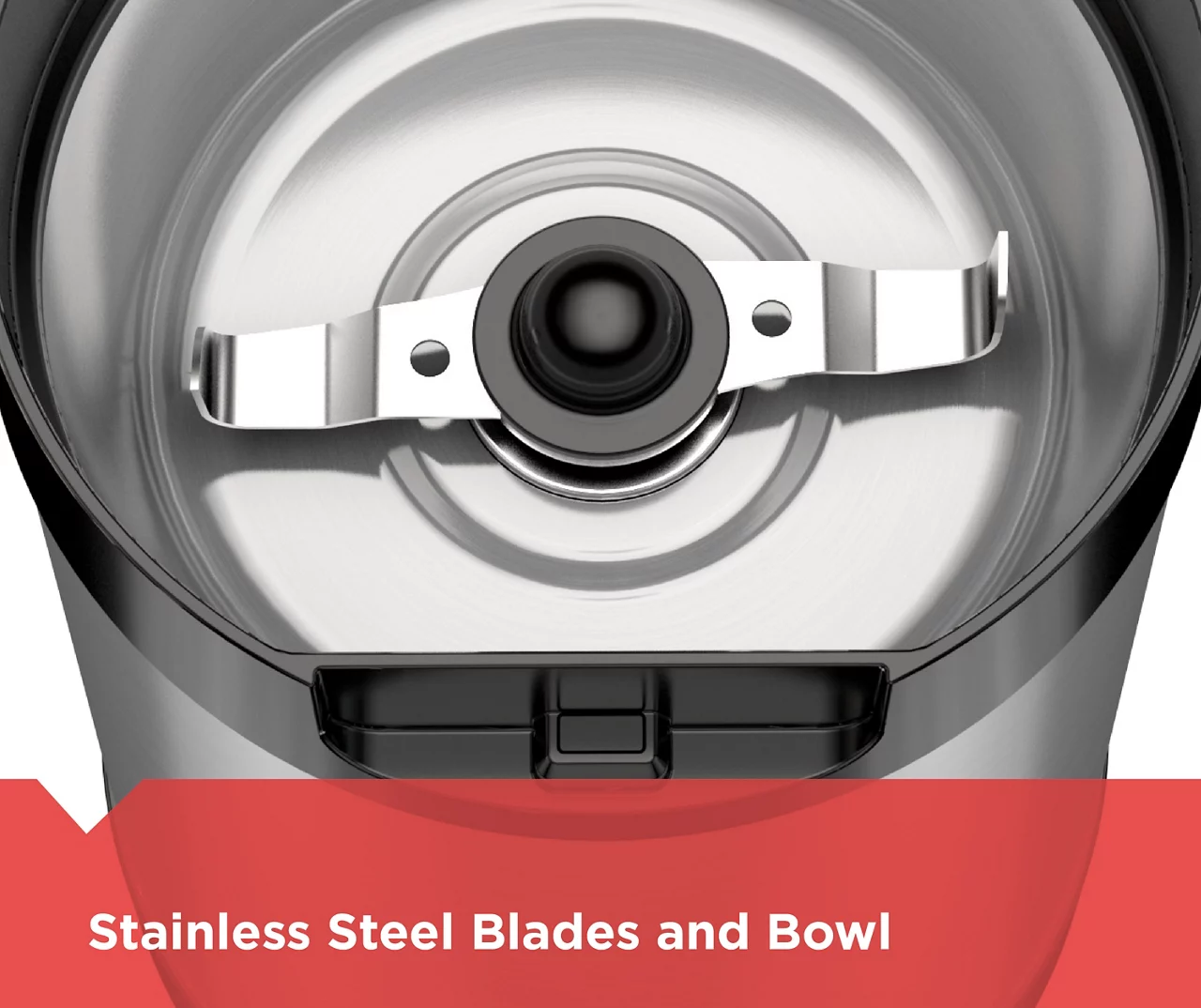 - Stainless steel blades easily grinds coffee beans and nuts from coarse to fine in seconds