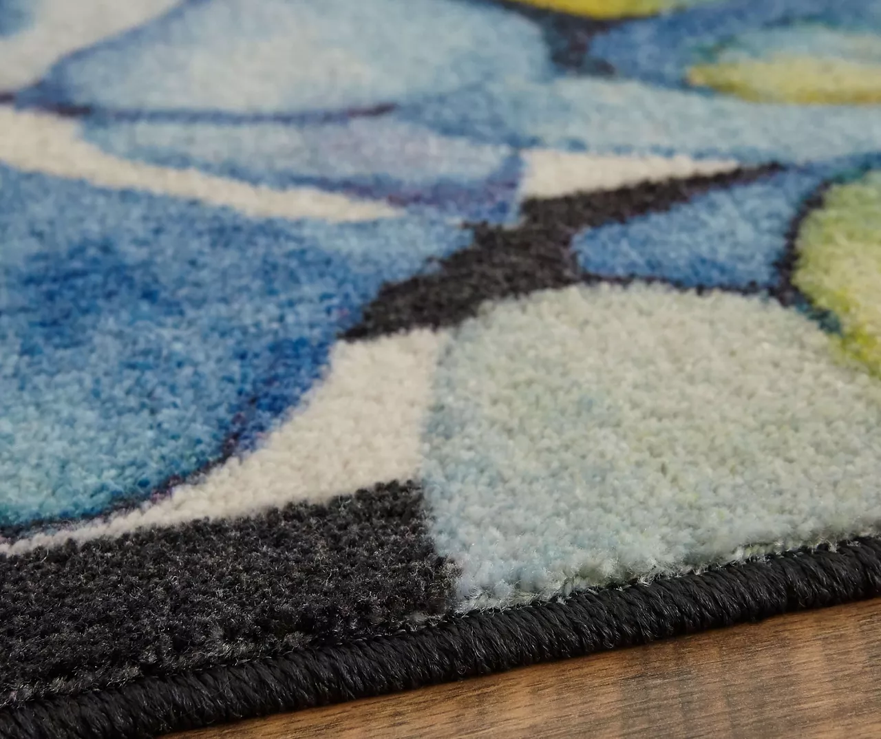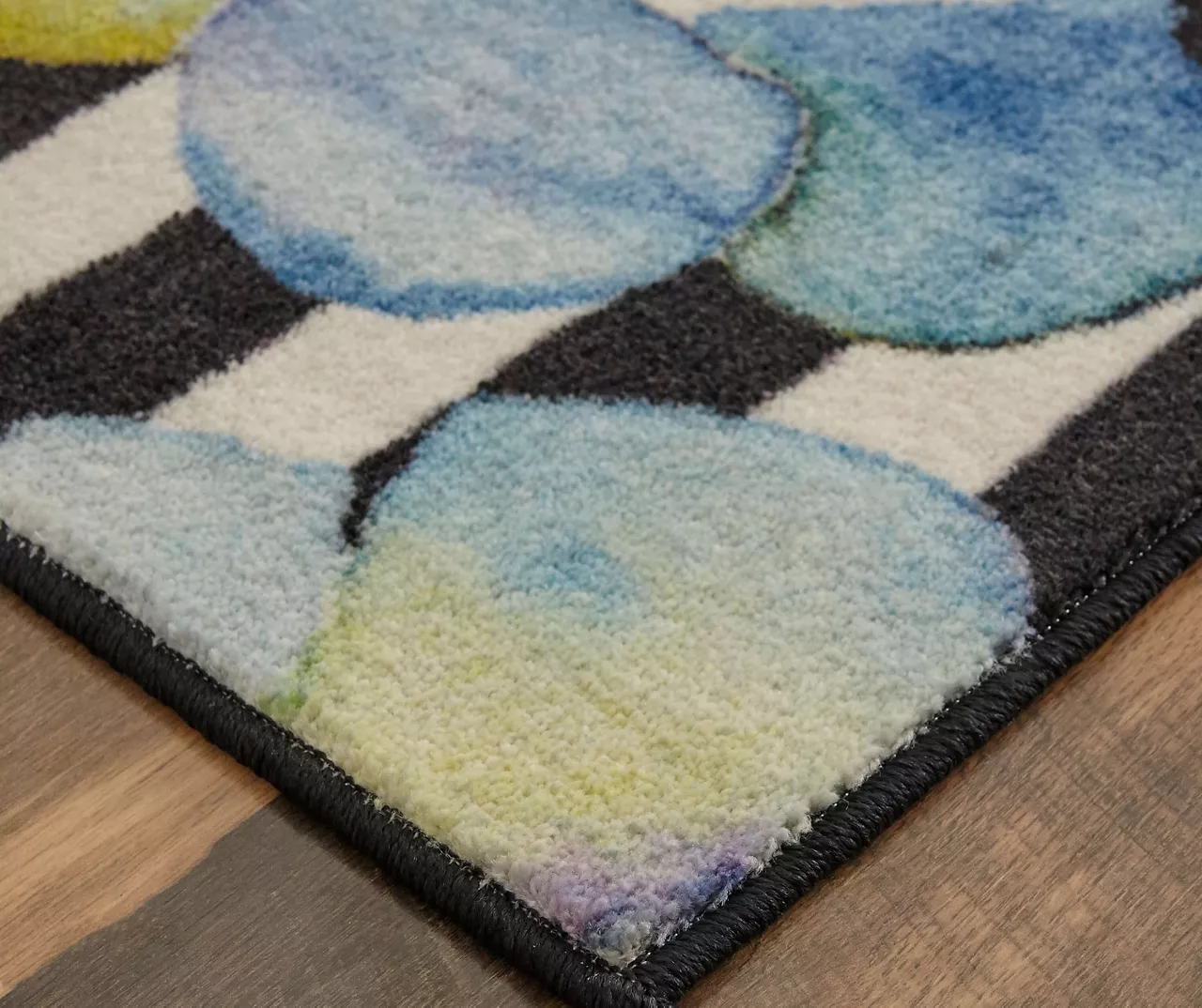 Contemporary and chic, black and white stripes create contrast behind periwinkle floral blossoms in the modern Parisian-inspired style of this area rug from Mohawk Home. Thoughtfully crafted in the U.S.A. utilizing Mohawk Home’s exclusive precision dye-injected printer, this rug is designed on a plush EverStrand™ tufted base made from premium recycled polyester. A non-skid latex backing helps to keep things in place, and the low pile is durably designed to easily work with doorways or furniture while withstanding everyday use.