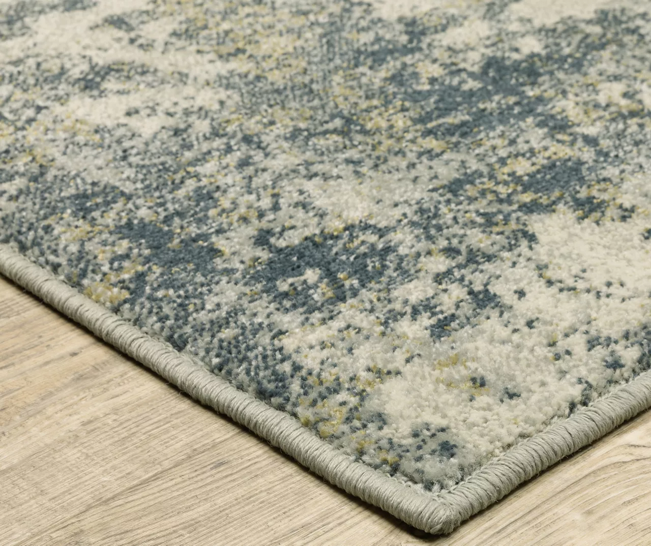 The Bridges collection is power-loomed in the USA from tri-colored and textured polypropylene yarn. It features a contemporary abstract design in beautifully updated, yet classic colors of deep blue, cool soft blue, moss green and warm ivory. The multi-colored yarns add depth and visual interest to the designs and the textured effect creates a very soft feel underfoot.