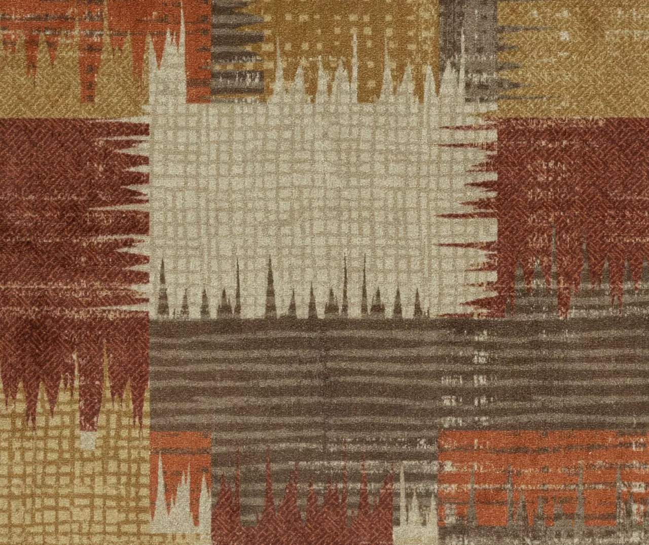 - Defined by an abstract patchwork design