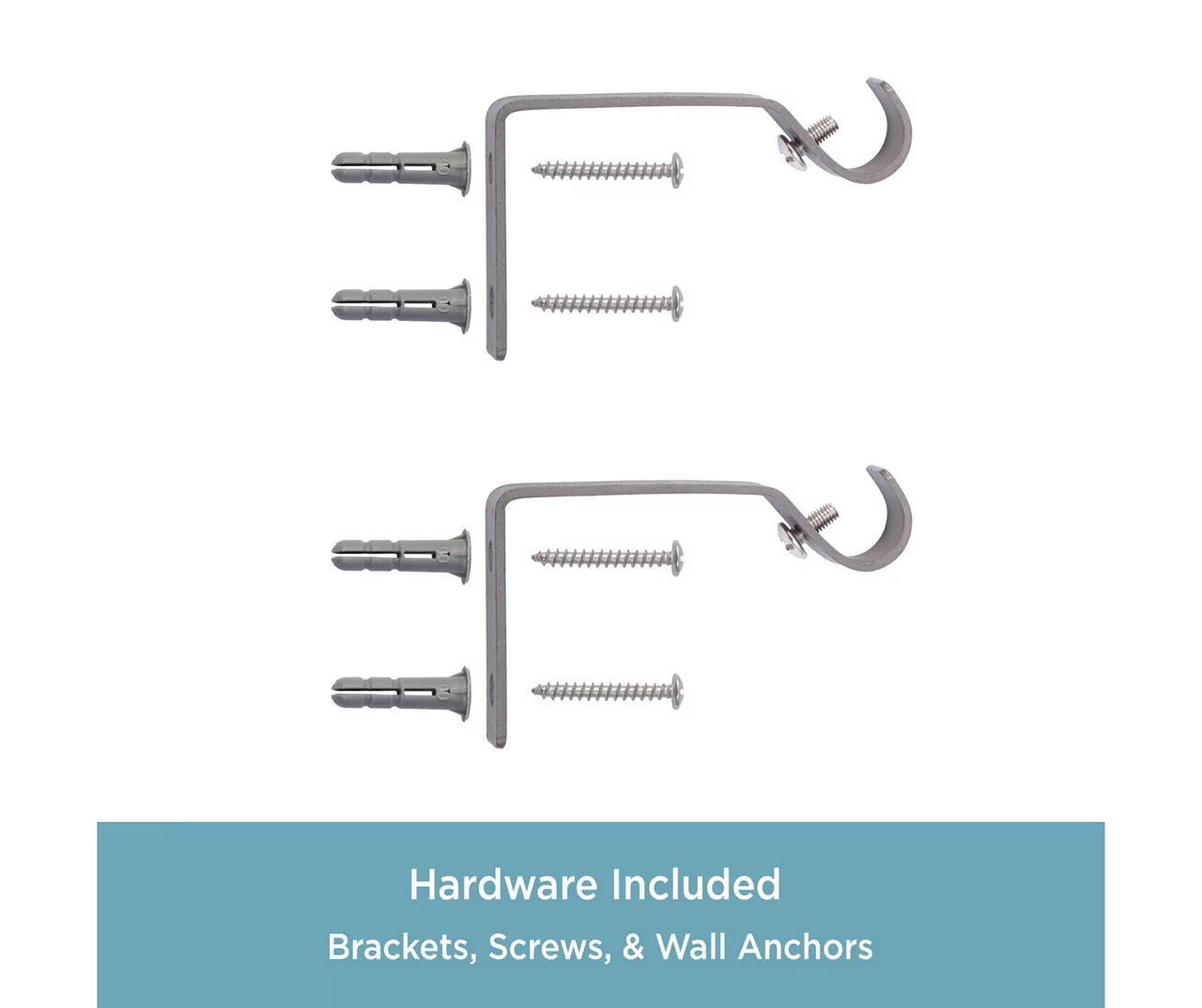 - Includes 1 – telescoping curtain rod with finials, 2 – brackets, screws and drywall anchors