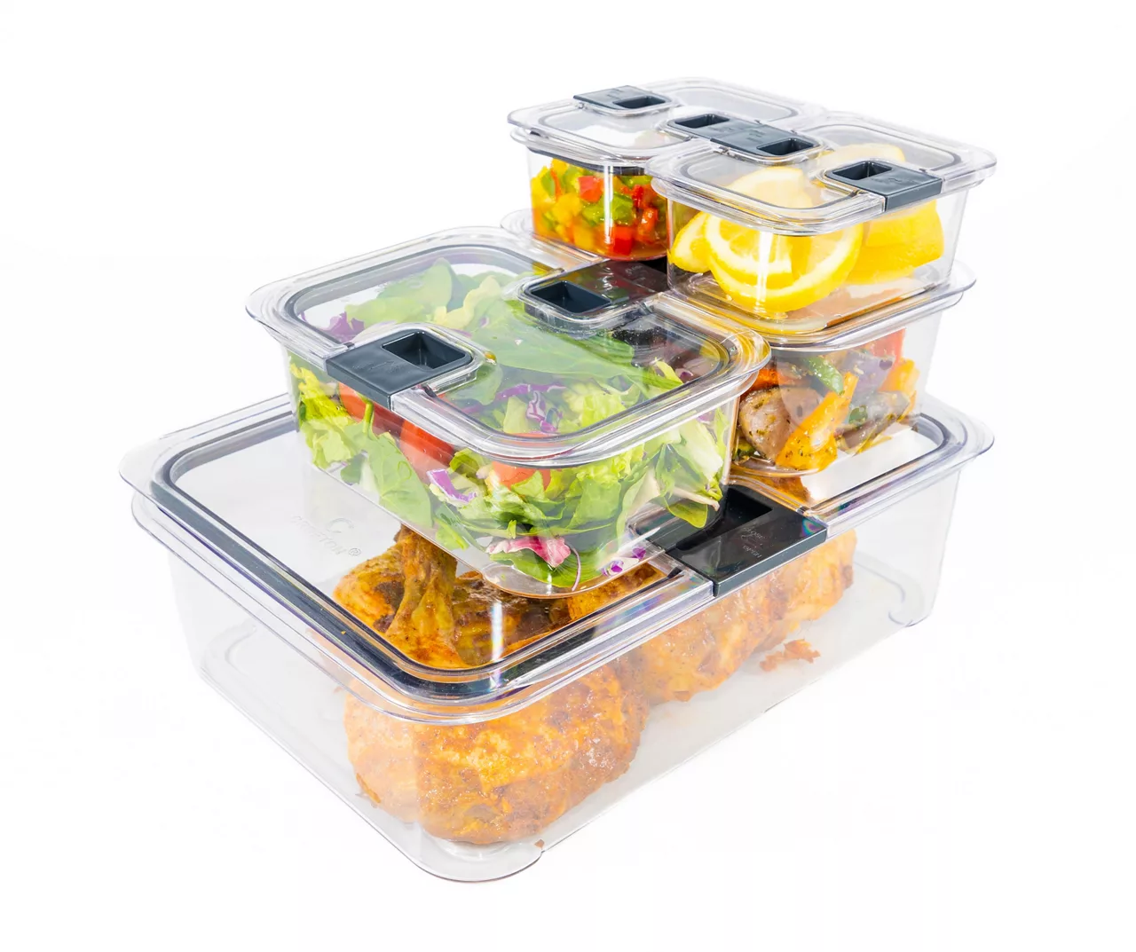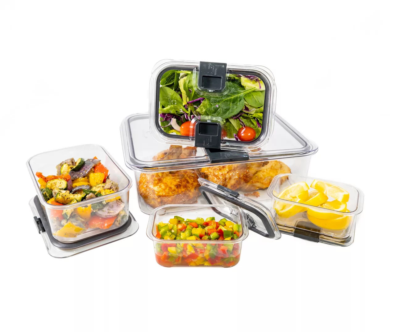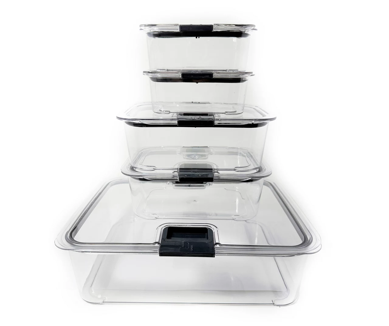 Easily store leftovers, ingredients and meal prep with this collection of airtight plastic storage containers. Thanks to the locking lids and clear finish you can keep food fresher for longer while organizing at a glance.
