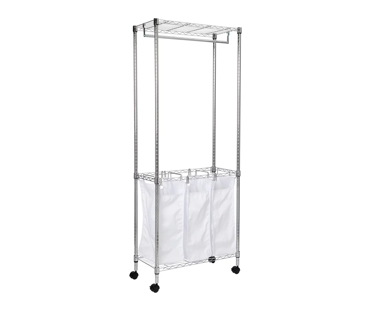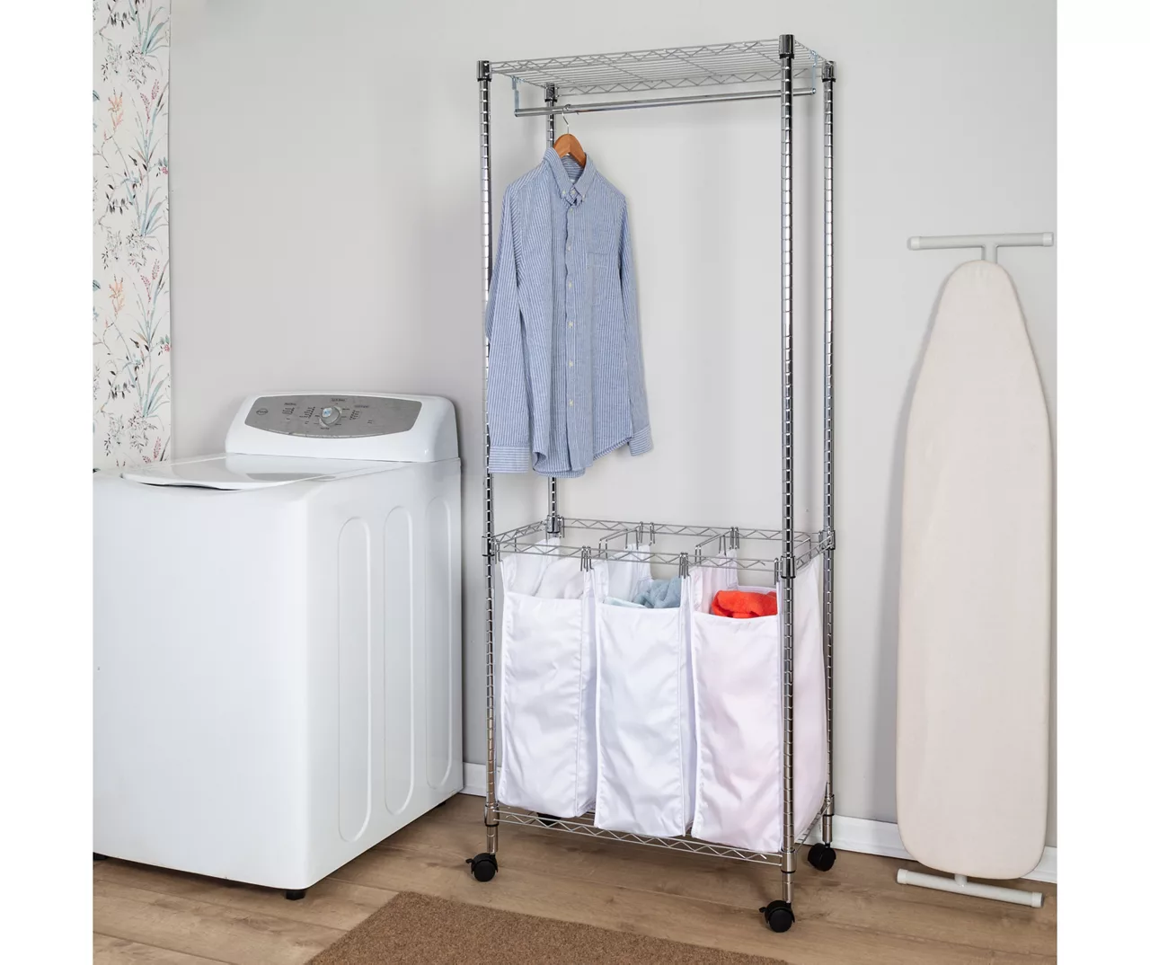 Designed to hold a variety of garments whether you’re hanging them to dry, building outfits or sorting loads, this hamper and garment rack from Honey-Can-Do provides for all your laundry needs. A garment rod sits under a shelf at the top, and this all-in-one station sits on rolling wheels so you can easily move from room to room.