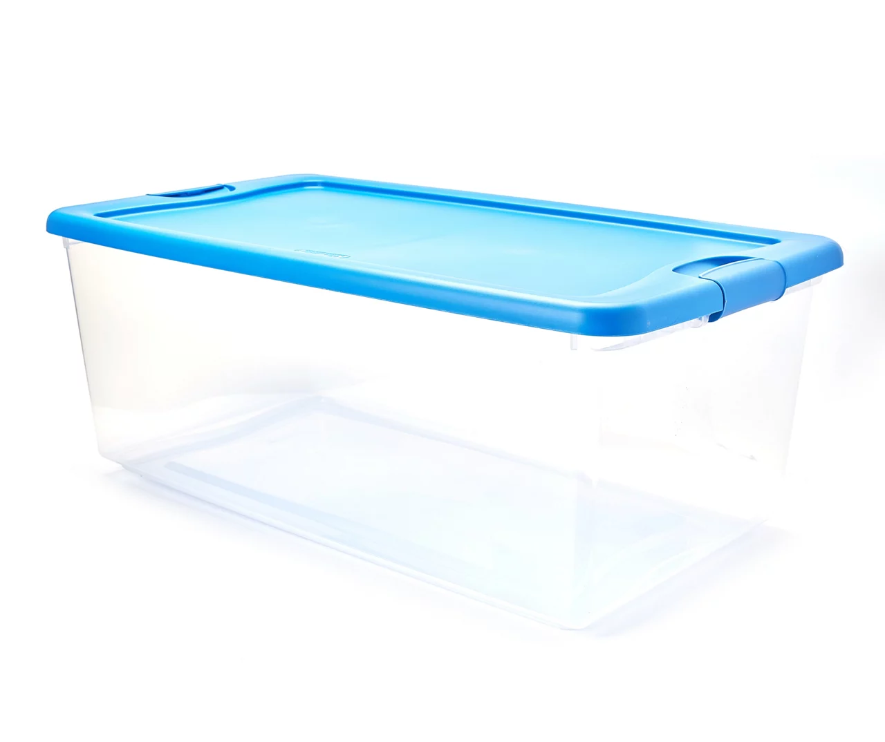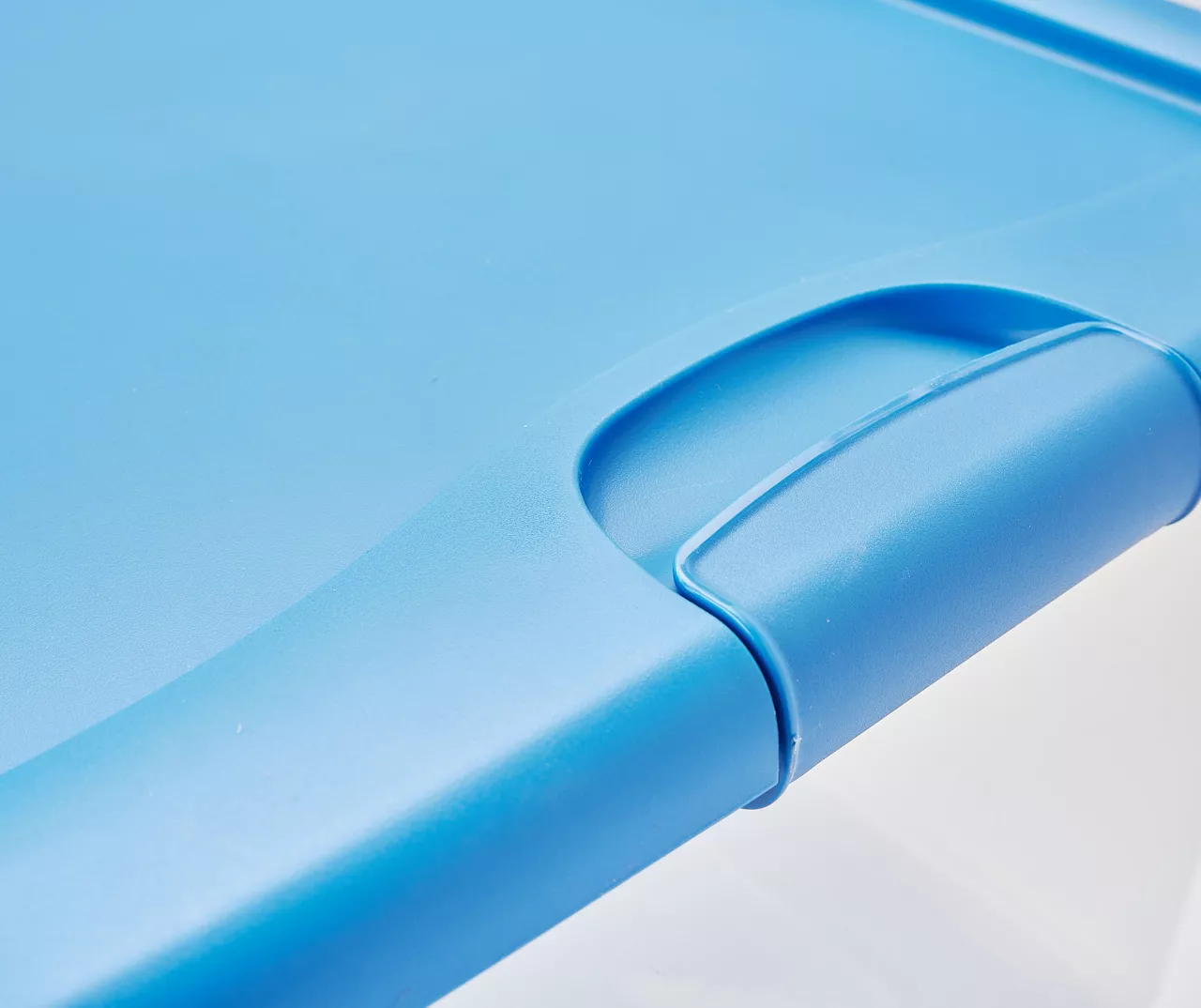 Step up your storage game with the Sterilite 6-quart latching tote, featuring a modern space saving shape and an innovativehinging lid. Simply undo one latch and lift the lid for easy access, all with one hand. The other latch stays attached and acts as a hinge, even when the lid is opened all of the way. This latching tote is ideal for storing shoes, toys, crafts and other small items around the home and fits conveniently on 16″ wire closet shelving. The recessed lid allows same-size storage boxes to stack neatly on top of each other to use vertical storage space efficiently.