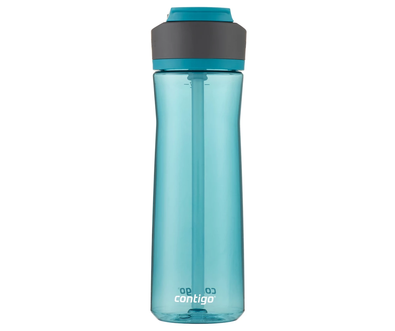 Push, sip and press your way to better hydration. The Contigo Autospout Tritan Water Bottle features push-button technology for easy one-handed drinking. The leakproof lid means less mess wherever you go, and the spout cover helps to protect the spout from dirt and grime so you can drink confidently. Carrying it around is easy with the integrated handle that swings up and sets back down to stay out of the way. Sip every last drop with the angled pop-up straw that fits securely into the lid.