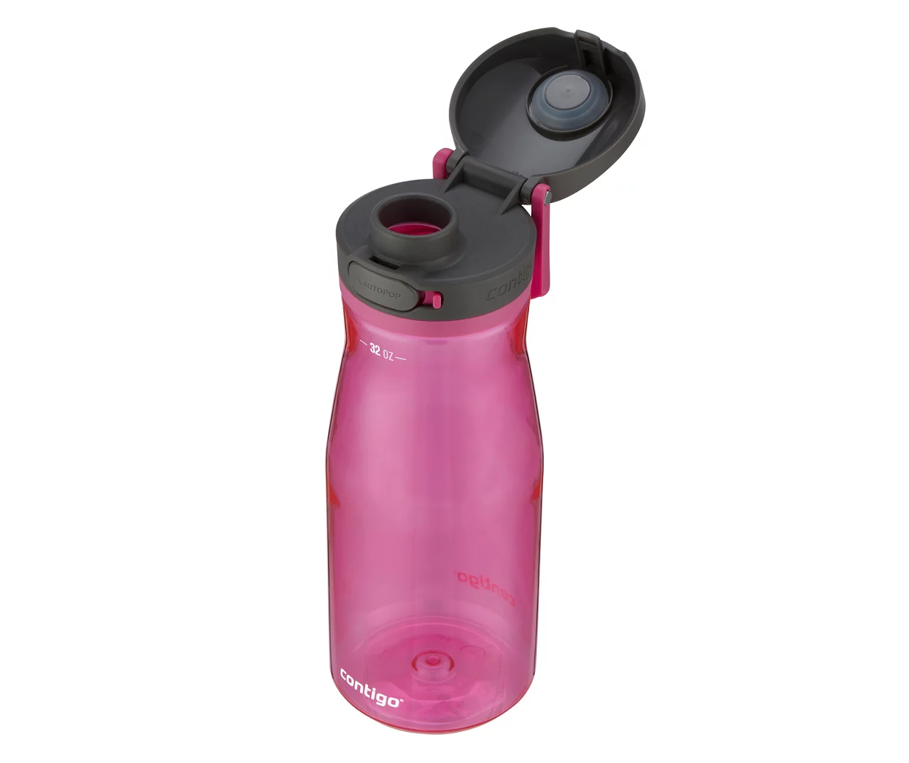 Pop, sip and click your way to better hydration. The Contigo Jackson 2.0 Water Bottle with Autopop Wide Mouth Lid Sake, features a wide mouthpiece for convenient on-the-go one-handed drinking in between all of the tasks on your to-do list. When you’re done drinking, click the lid back into place to help protect the bottle from dirt and grime, then lock the lid for extra protection. The leakproof design means no spills in your car, on your desk, or wherever you are. Carrying it around is easy with the integrated handle.