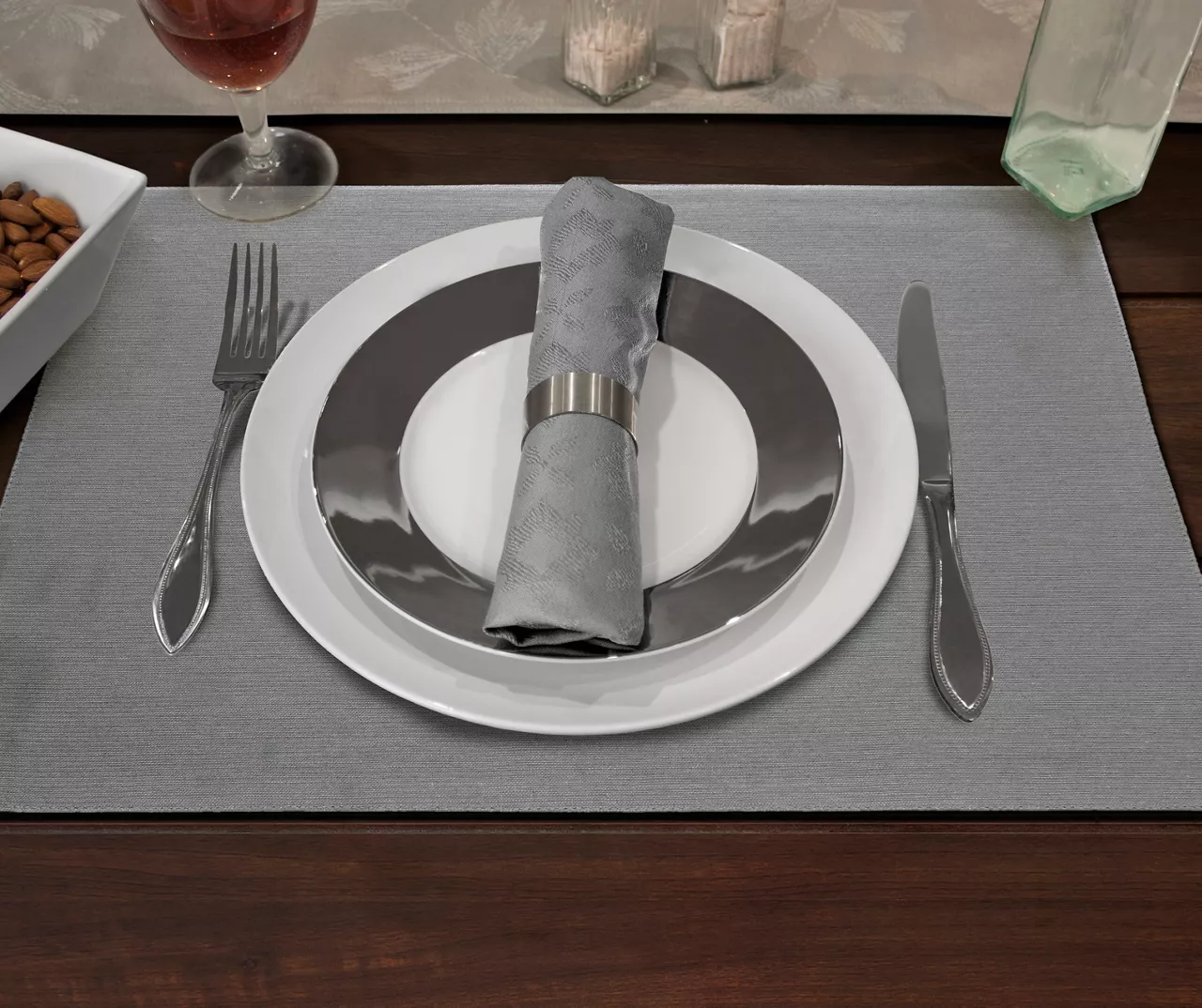 Craft a simply elegant foundation for your meals with these fabric placemats from Cuisinart. Textured stripes boast a versatile gray hue to provide a subtly sophisticated backdrop for each dish and place setting.