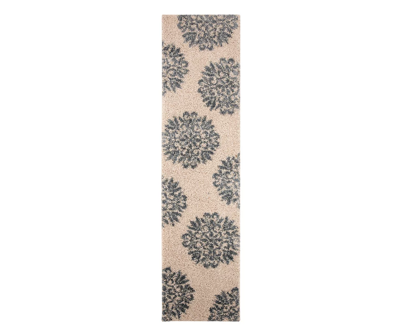 Oversized medallions in cool blue makes a beautiful contrast against neutral tan on this Exploded Medallions rug. It’s a perfect addition in any living or work space to add chic style and soft comfort underfoot.