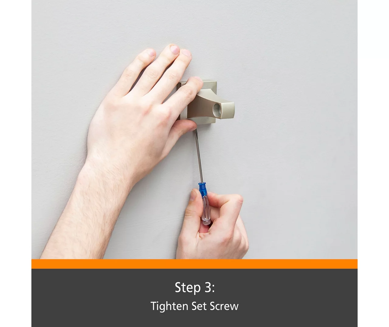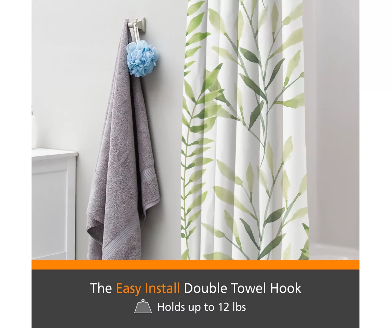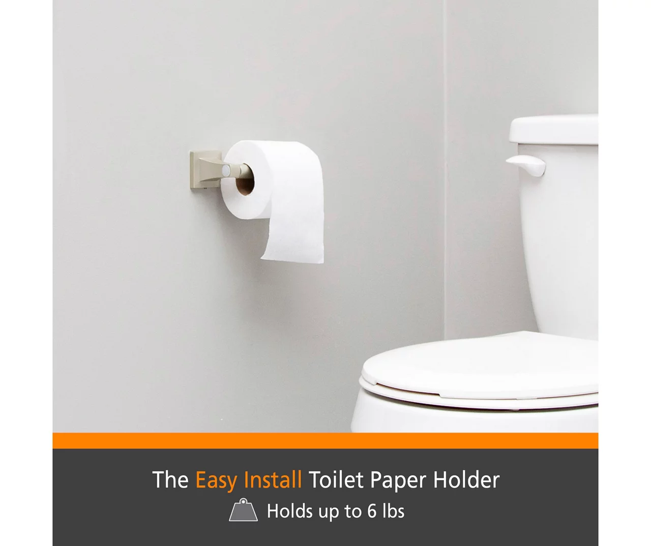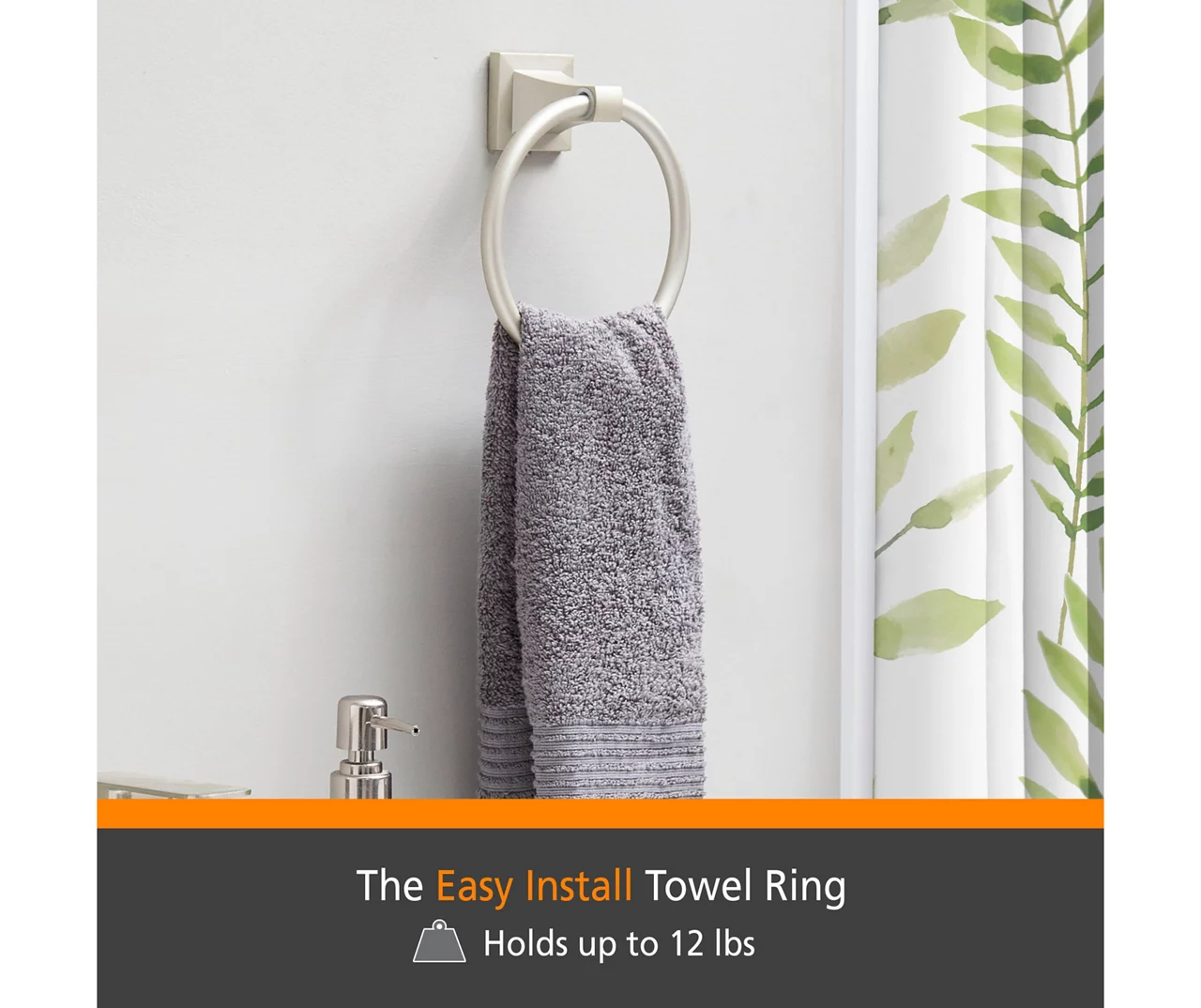 The Fast Fit™ Juliette 4-Piece Bath Hardware Set by Kenney® is as easy to hang as a picture frame and installs in just minutes. This convenient and rust-resistant 4-piece set includes a 24″ towel bar, standard toilet paper holder, towel ring and double towel hook in a lovely brushed nickel finish. Easy installation does not sacrifice performance, as Fast Fit™ Bath Hardware provides excellent support.