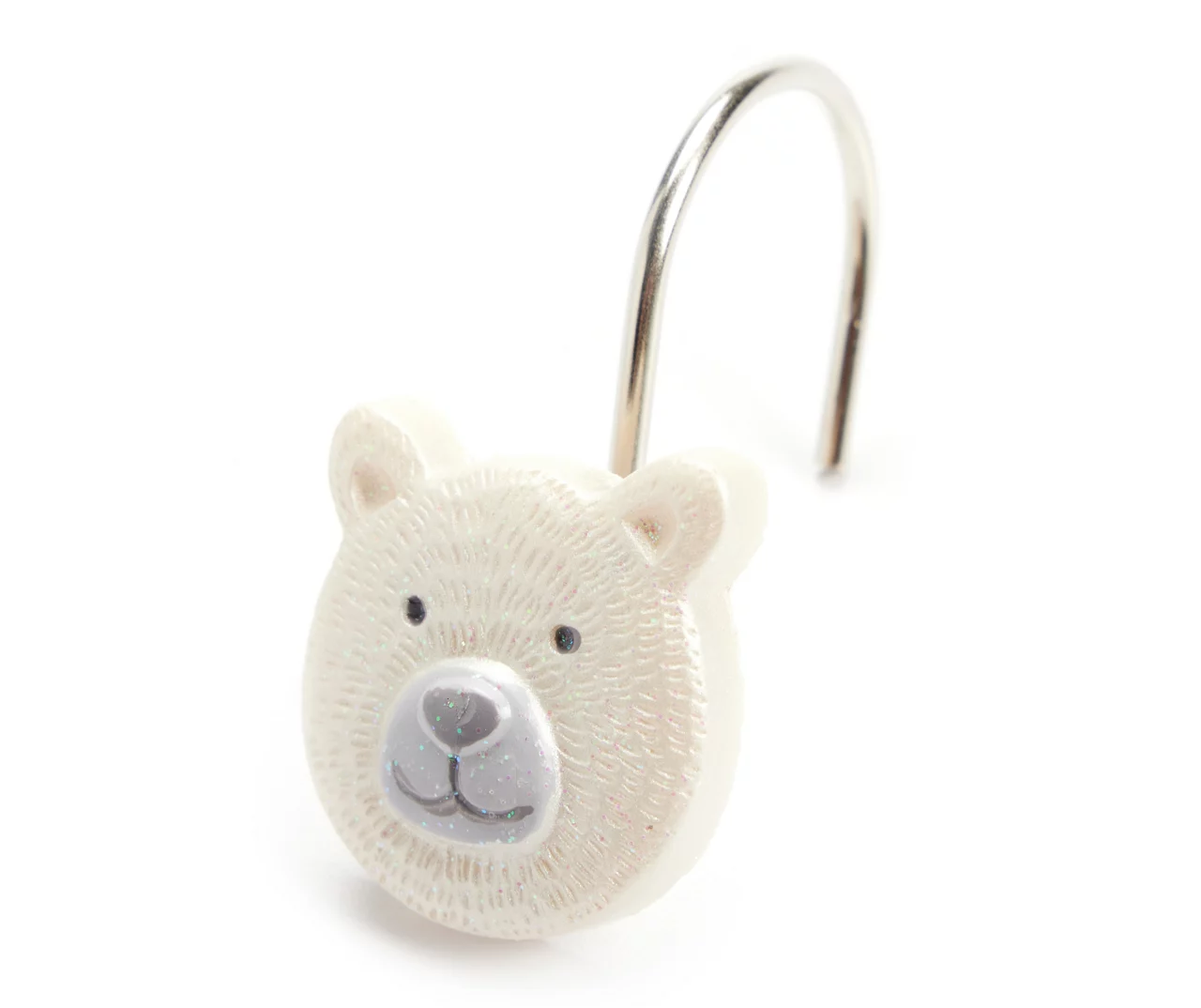 - Sculpted resin hooks are charmingly designed to complement the curtain’s theme