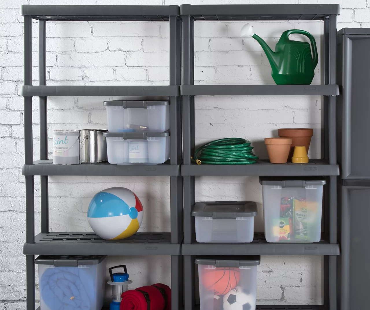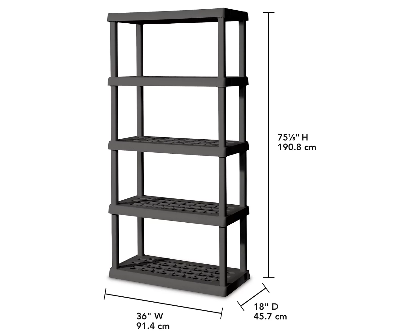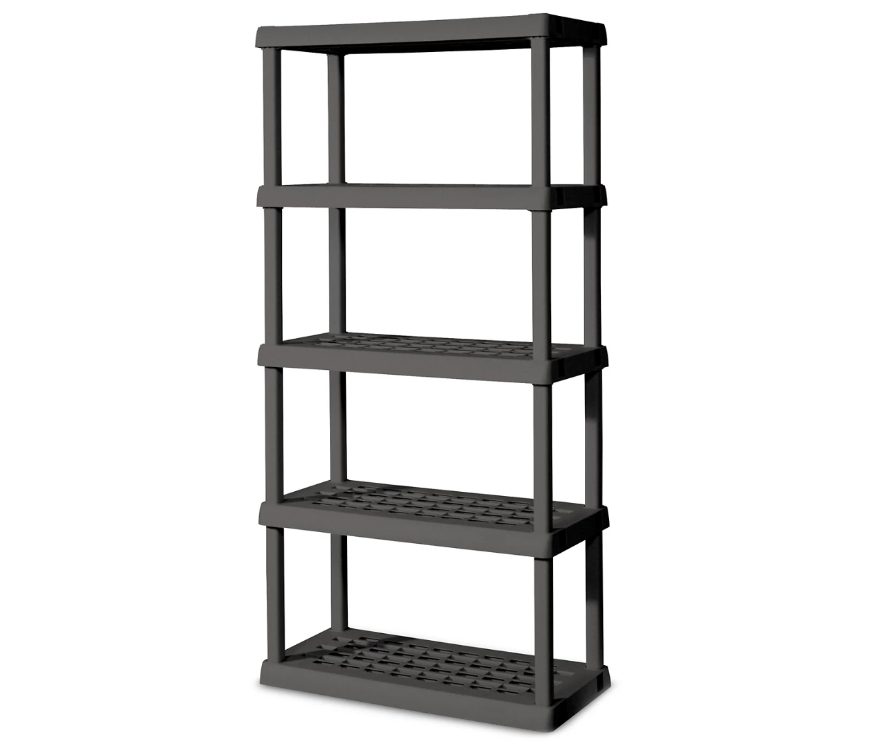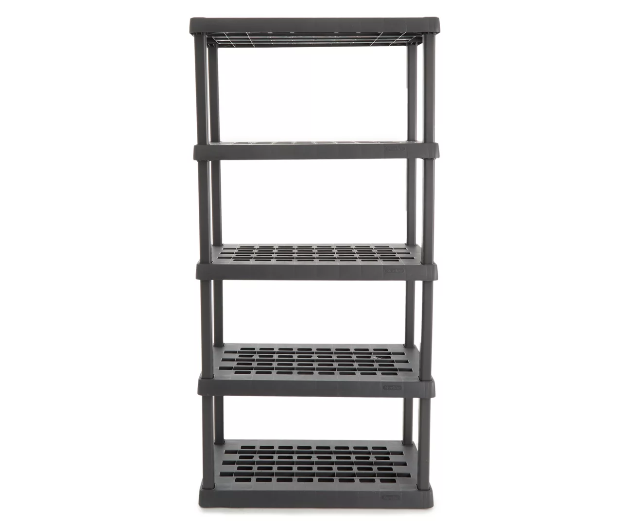 Keep your home in order using this convenient five-shelf unit from Sterilite. Its rugged tubular design allows you to store a variety of items in the garage, basement or storage closet. Requiring no tools to assemble, it’s perfect for storage bins, toys, sports equipment and yard tools.
