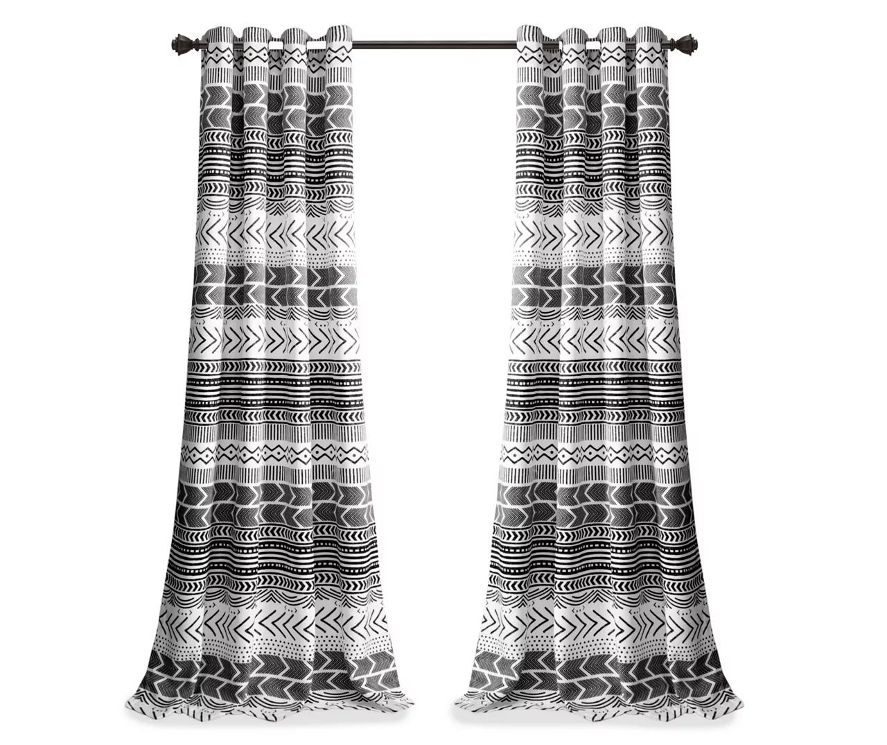 - Room-darkening curtain panels help filter out sunlight and provide privacy