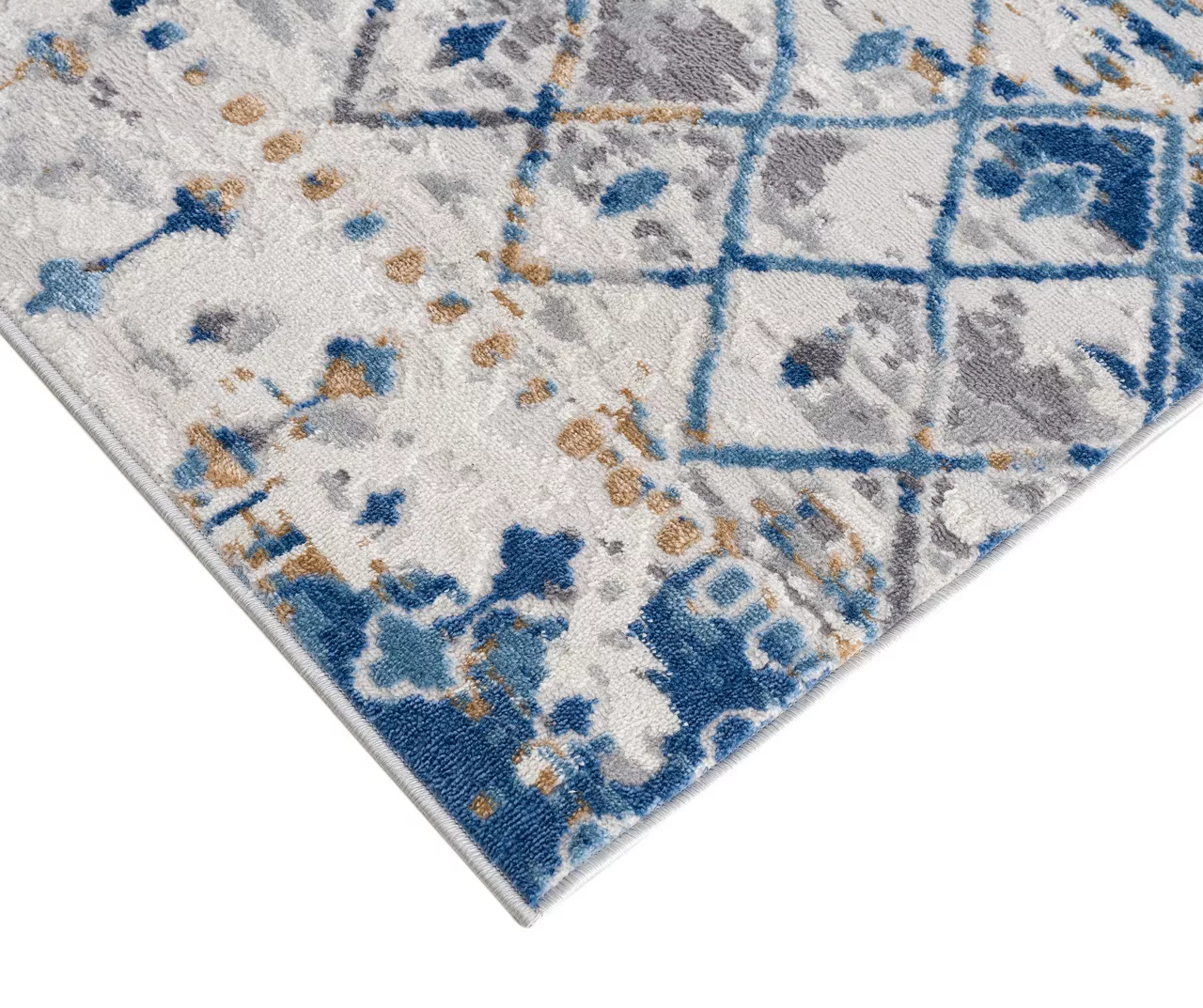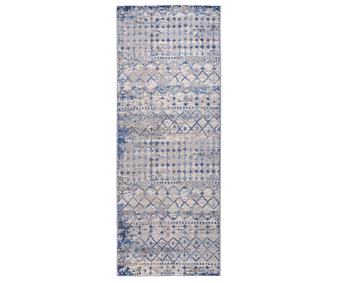 Add fashionable style to your living space with the Jessica Moroccan area rug. This machine-woven rug features a blue and cream globally inspired print creating a beautiful boho-inspired look for a splash of color and texture. The medium soft pile makes this area rug well-suited to high-traffic areas in your home. Transparent sprayed latex on the reverse side helps prevent this rug from sliding, but a rug pad is still highly recommended to keep the rug in place.