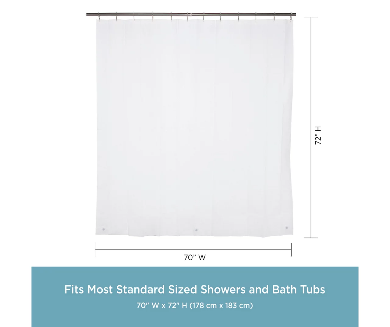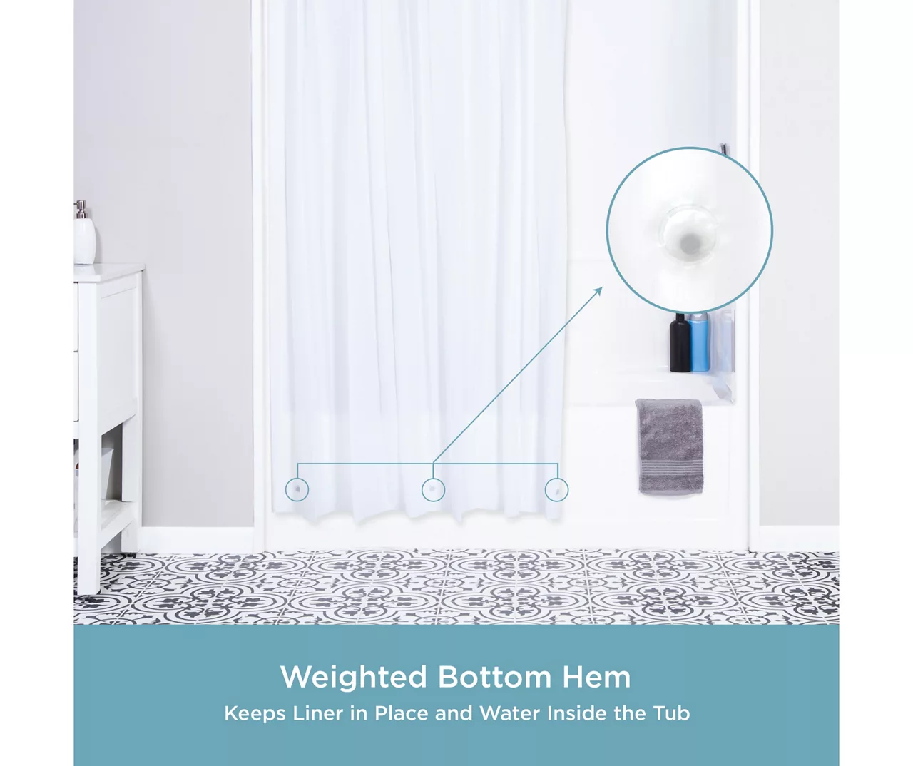 - Medium-weight, 5-gauge PEVA shower liner is PVC-free and odorless