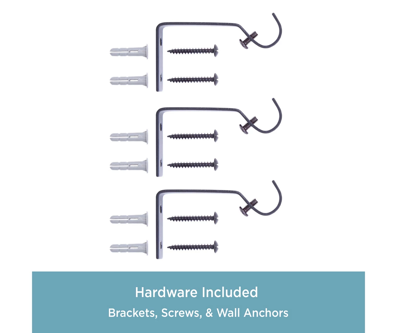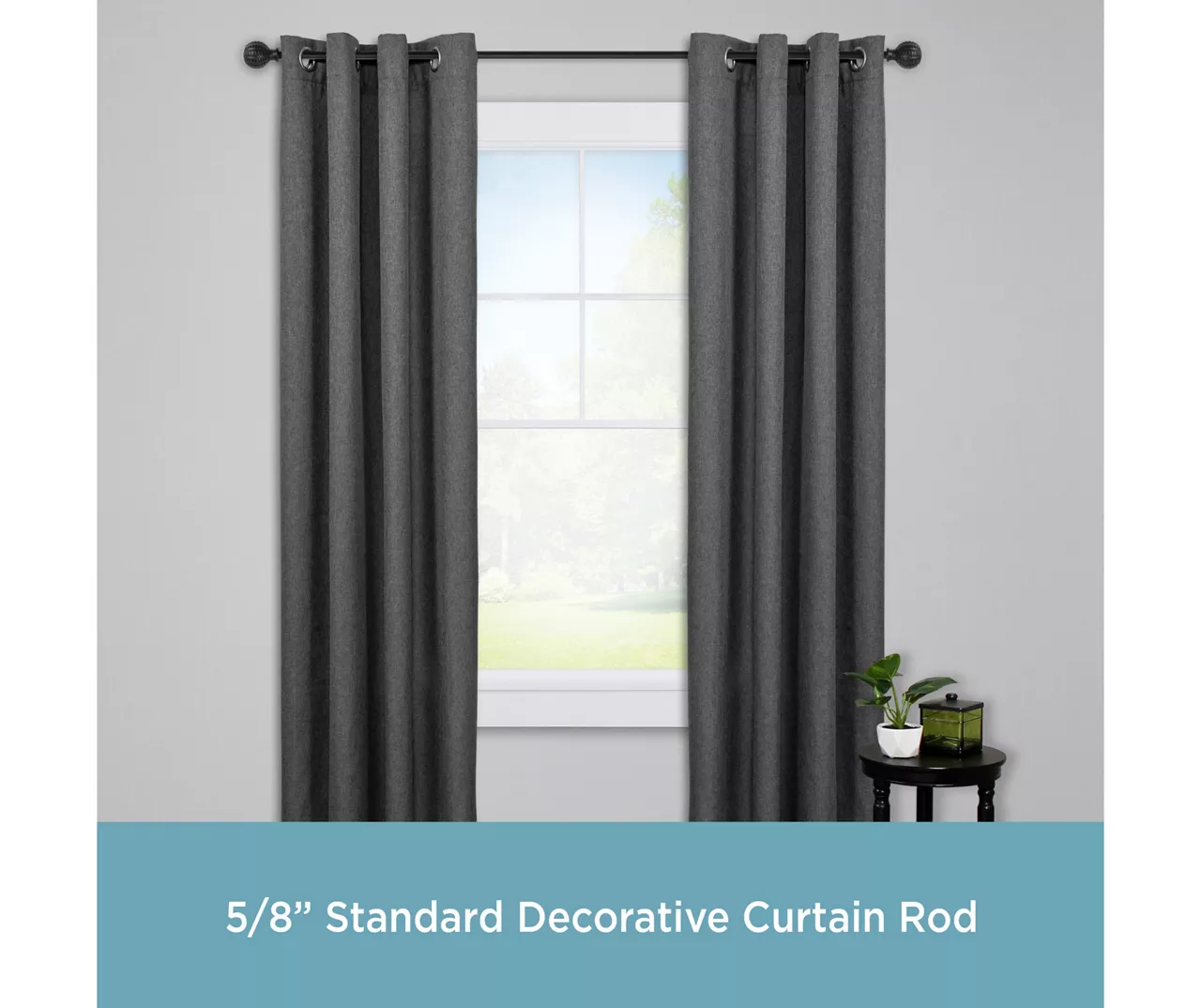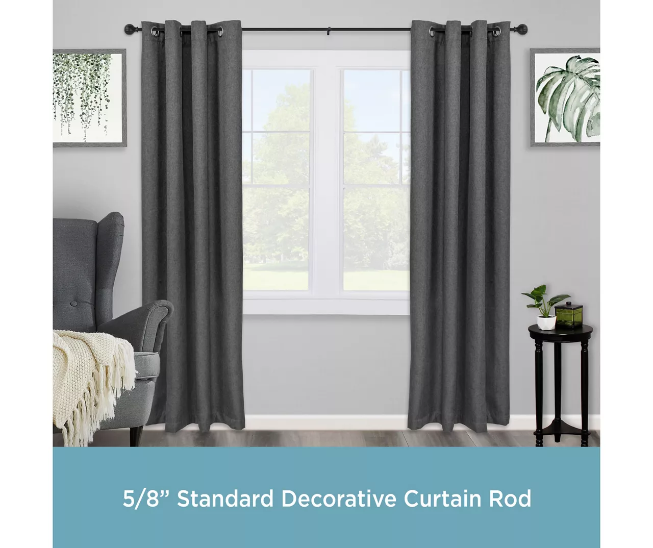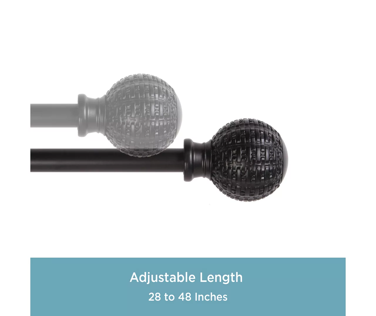 - 5/8″ diameter curtain rod adjusts from 28-48″ and projects 3″ from the wall
