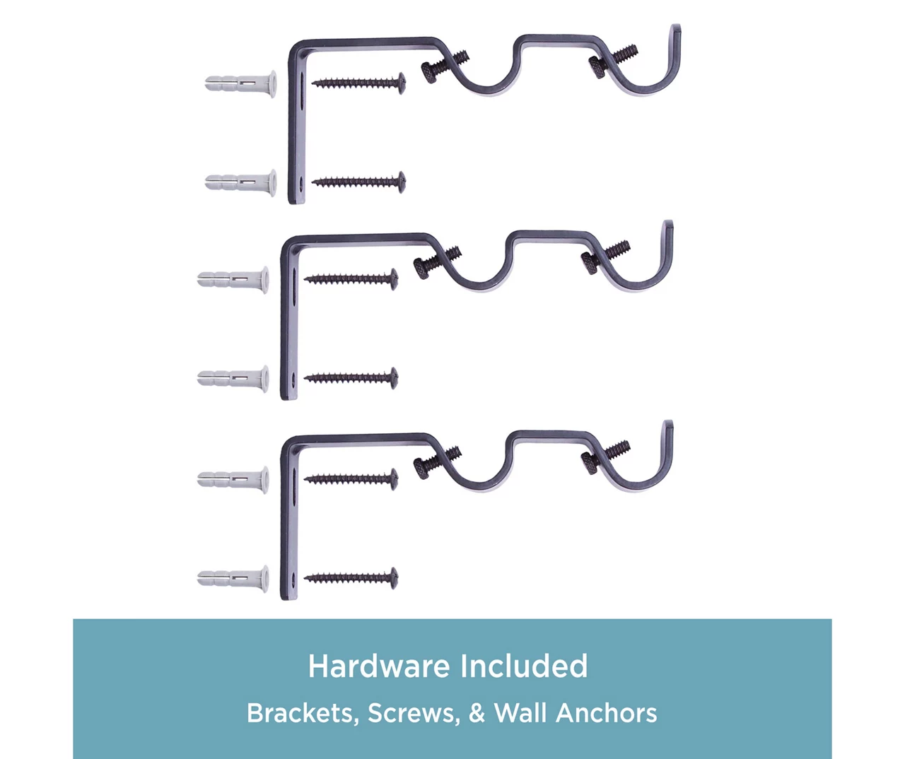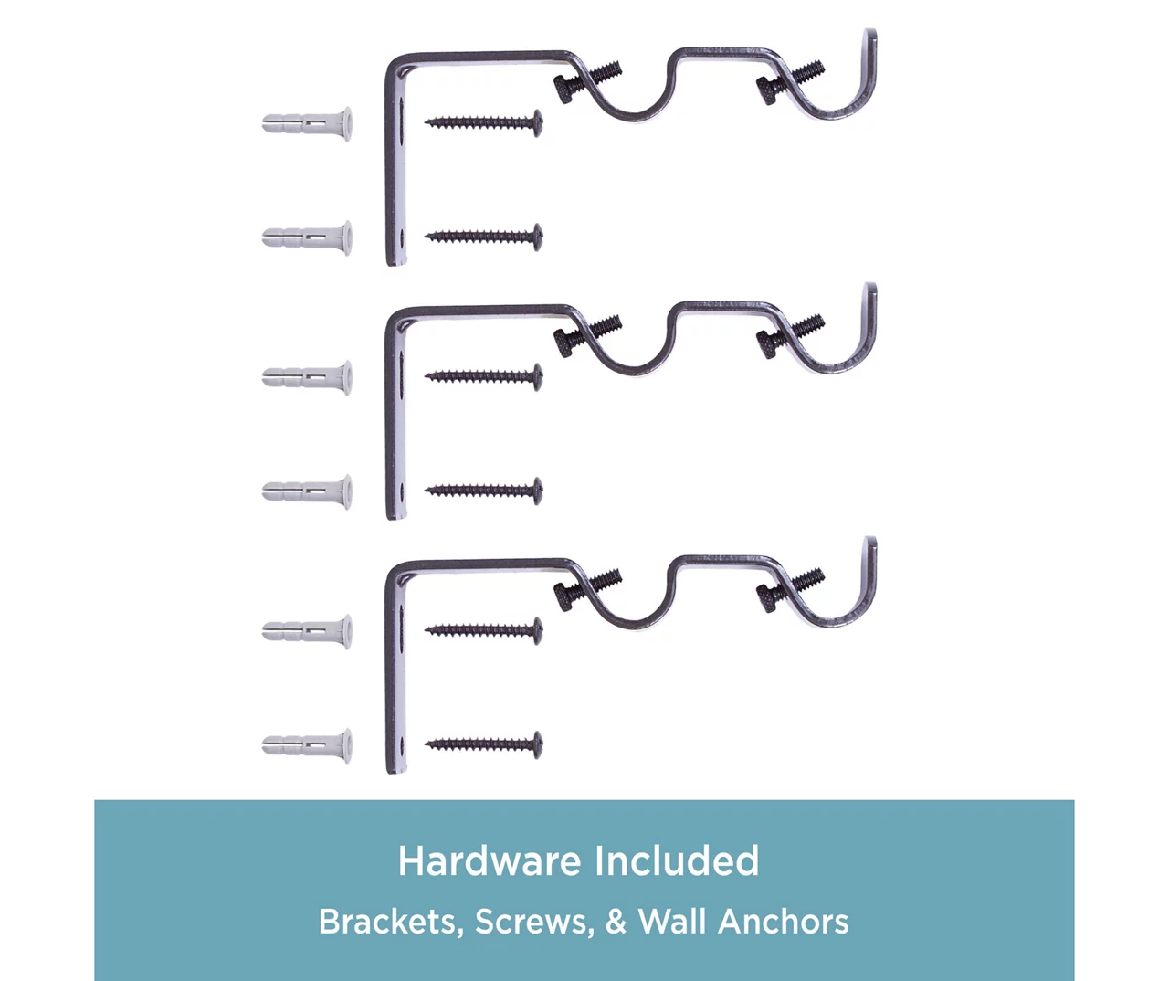 - Includes 1 telescoping back curtain rod, mounting brackets, center support, screws, drywall anchors and installation instructions