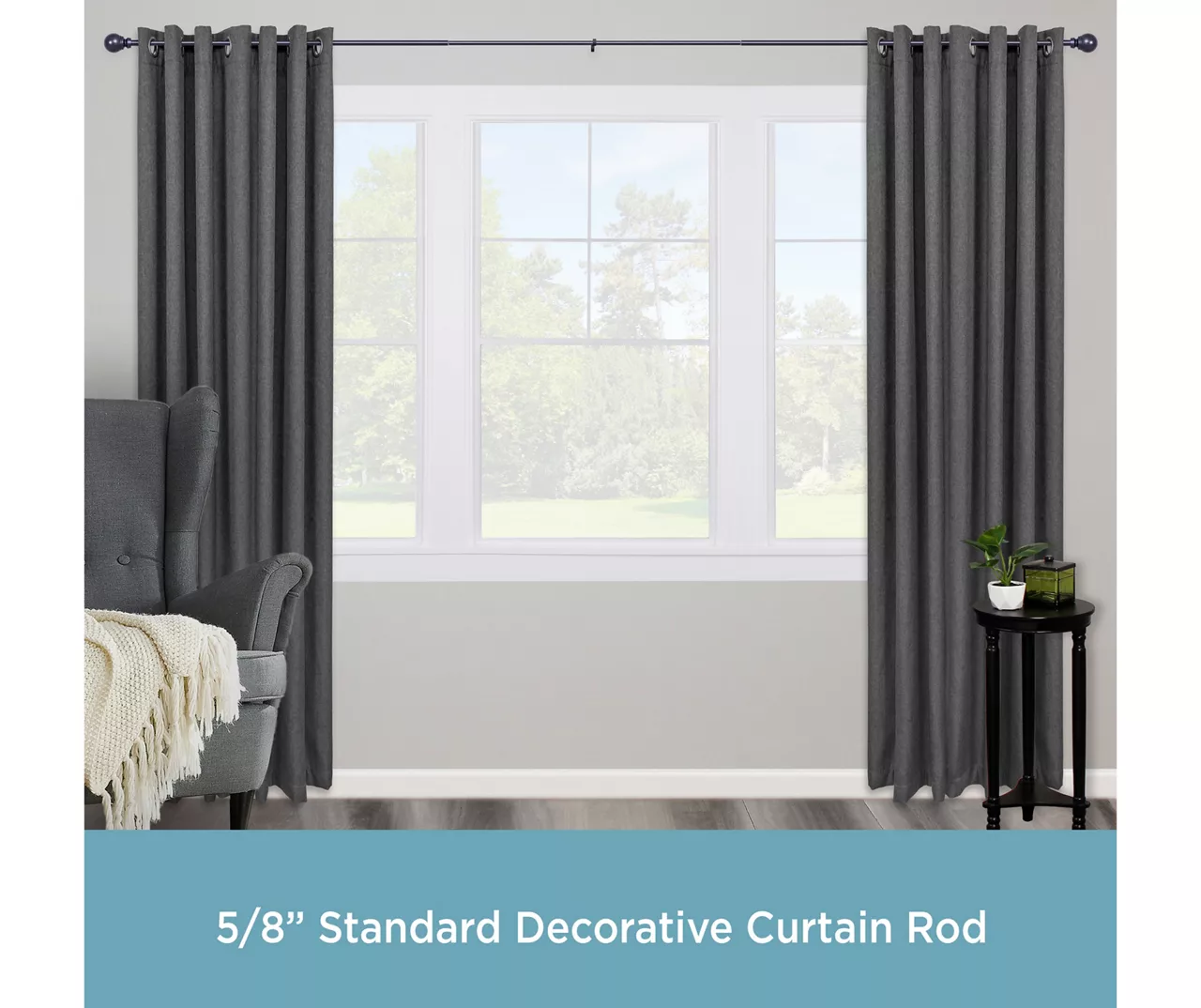 - 5/8″ diameter curtain rod adjusts from 28-48″ and projects 2.97″ from the wall