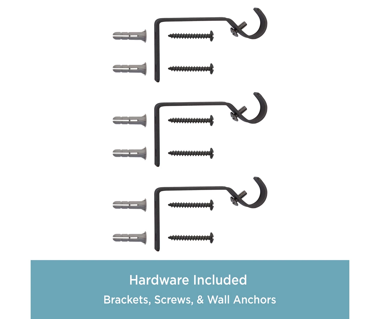 - Includes 1 telescoping curtain rod with finials, 2 brackets, screws, drywall anchors and installation instructions