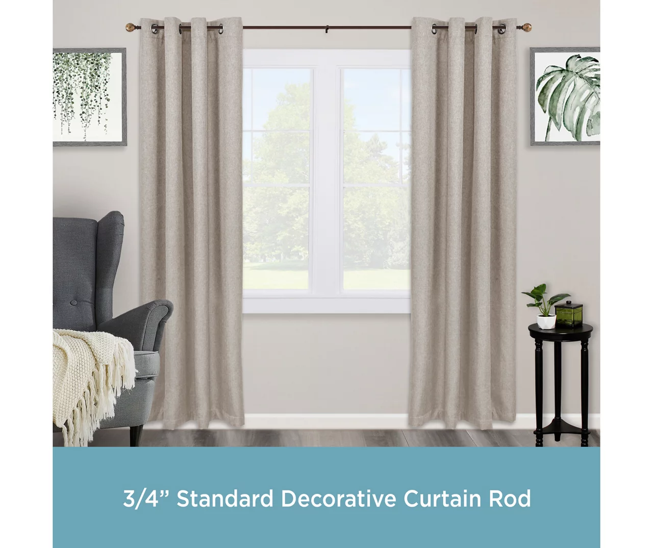 - 3/4″ diameter curtain rod adjusts from 36-66″ and projects 3.5″ from the wall