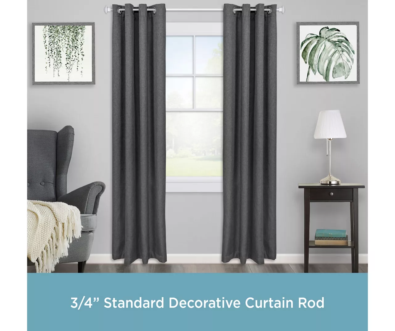 - 3/4″ diameter curtain rod adjusts from 36-66″ and projects 3.73″ from the wall