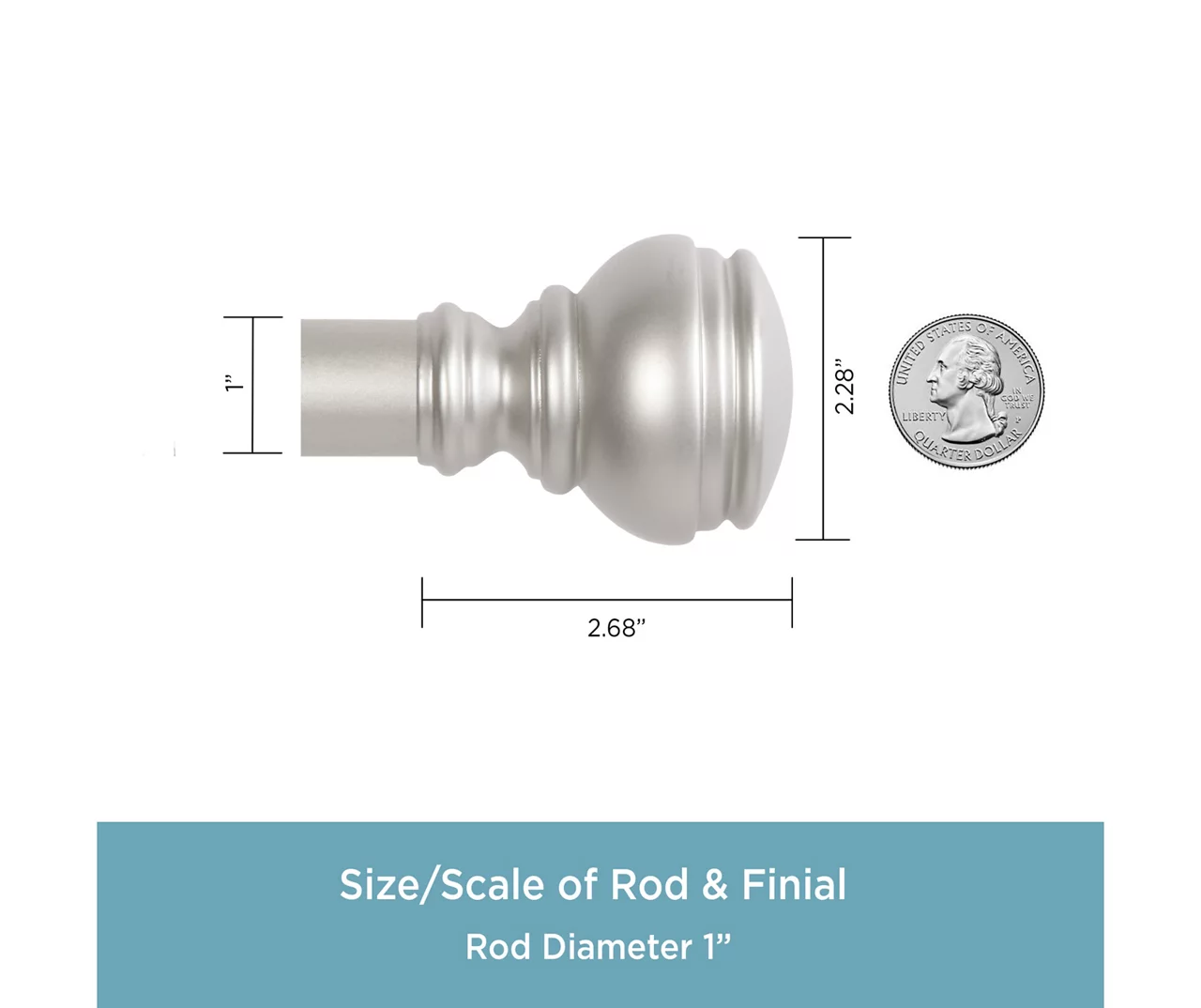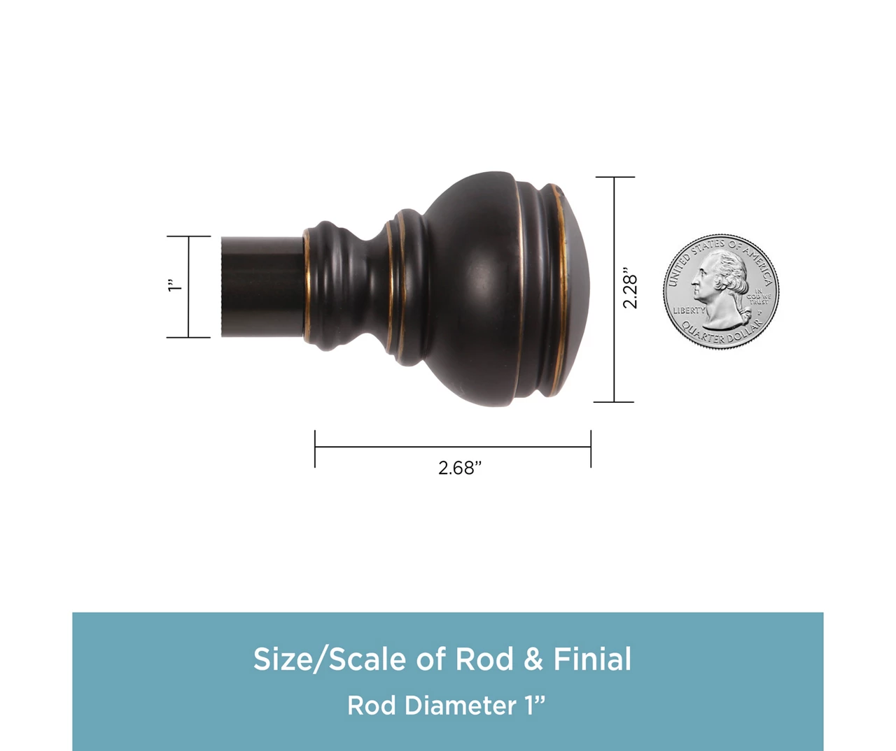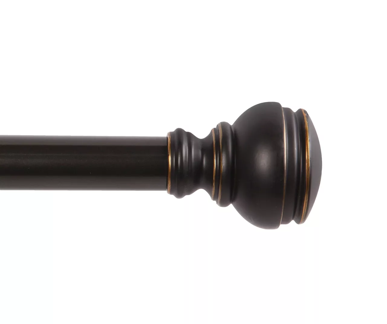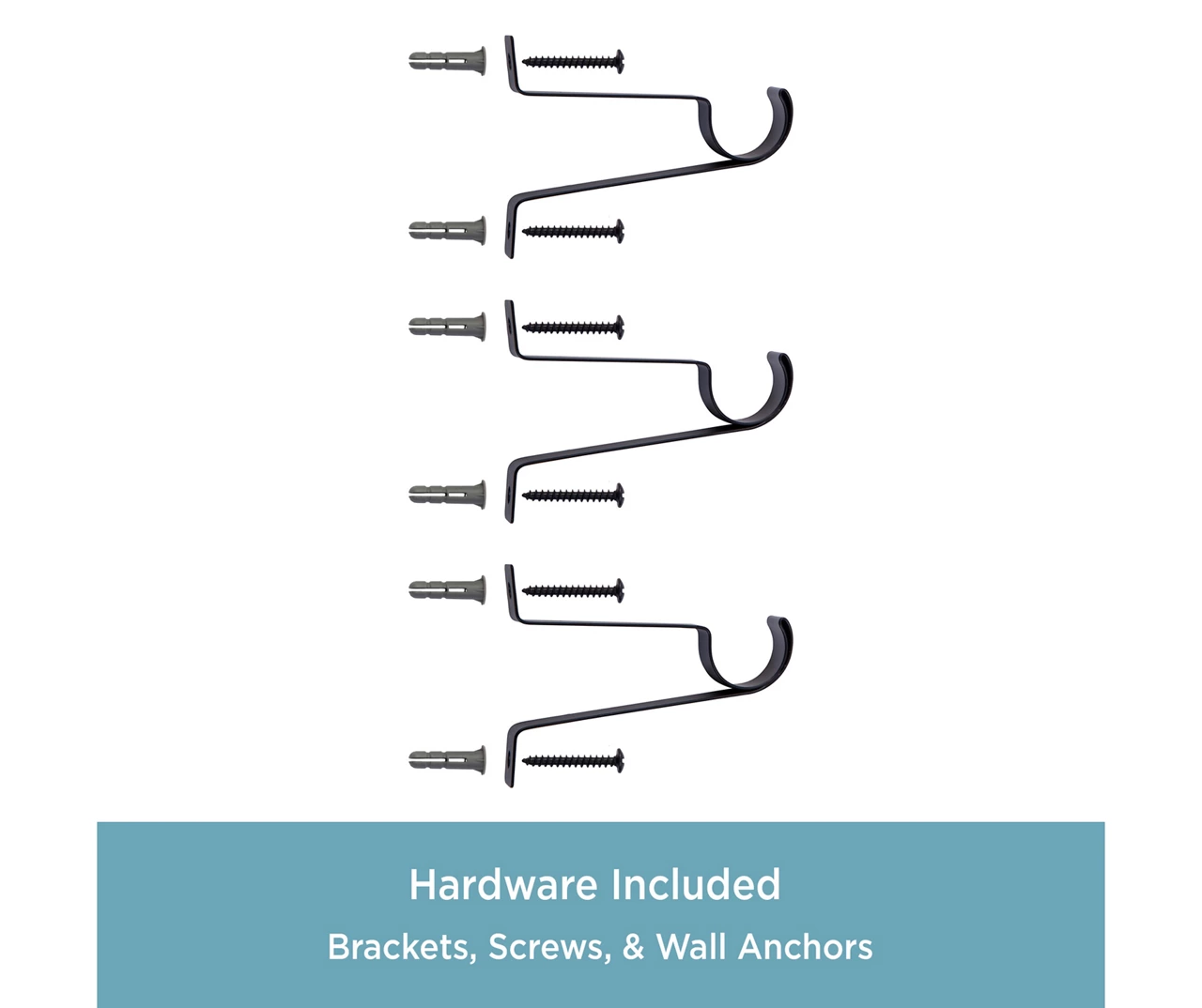 - Includes 1 telescoping curtain rod with finials, 2 brackets, 1 center support, screws, drywall anchors and installation instructions