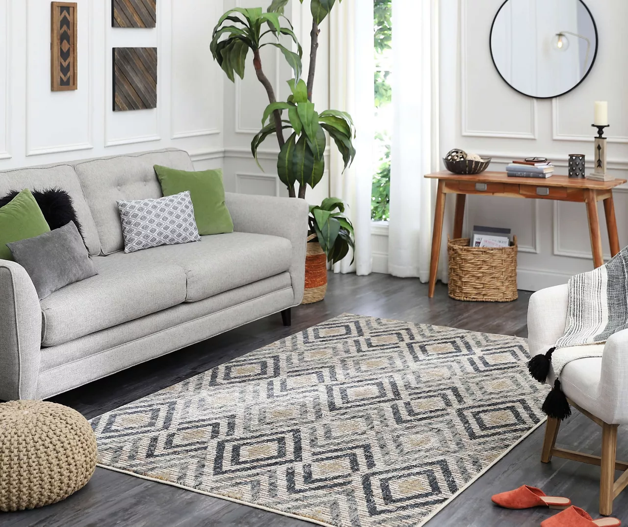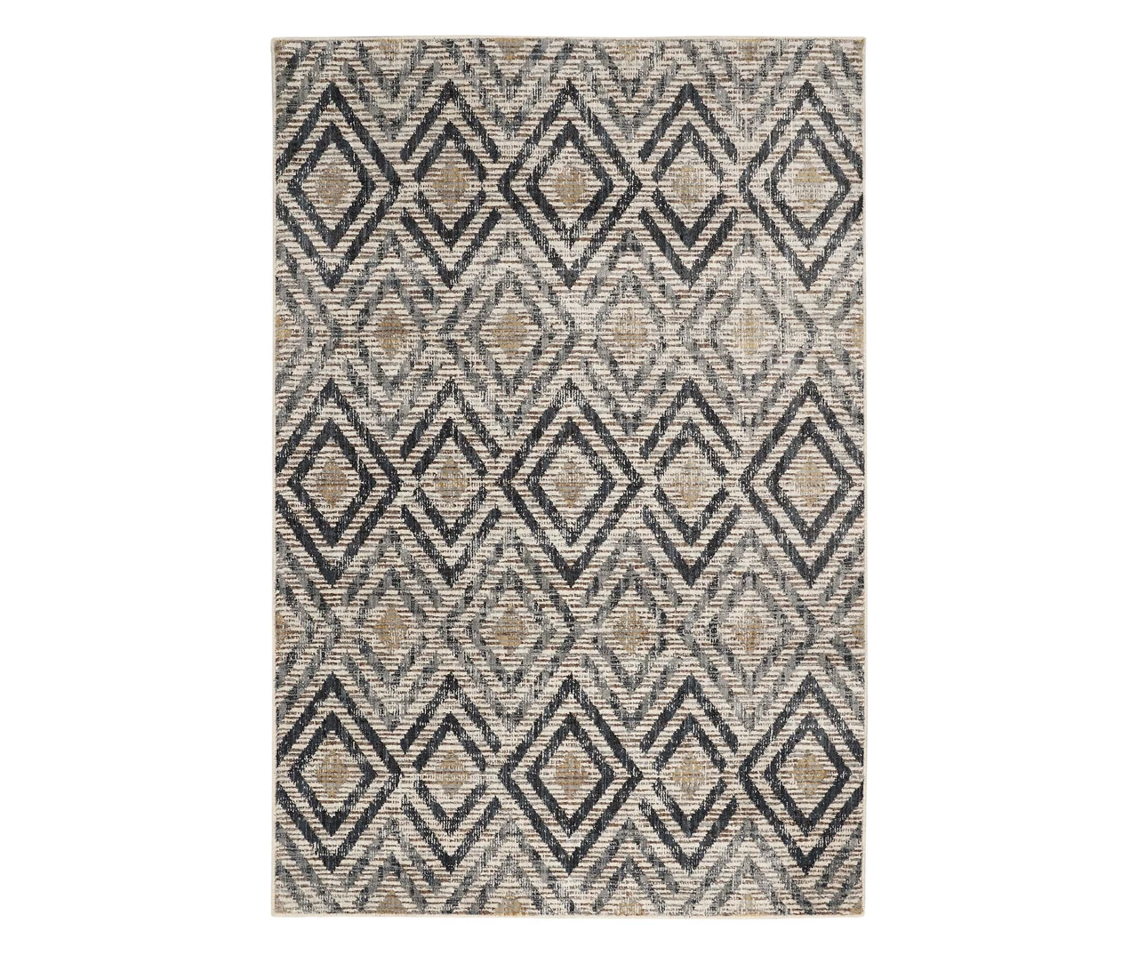 Live in luxurious style with the Mohawk Lenox area rug featuring a geometric pattern in a modern navy and tan color palette. Thoughtfully designed with Mohawk’s machine-woven construction, this rug is crafted with stain-resistant yarn and durably secured with hard latex backing.