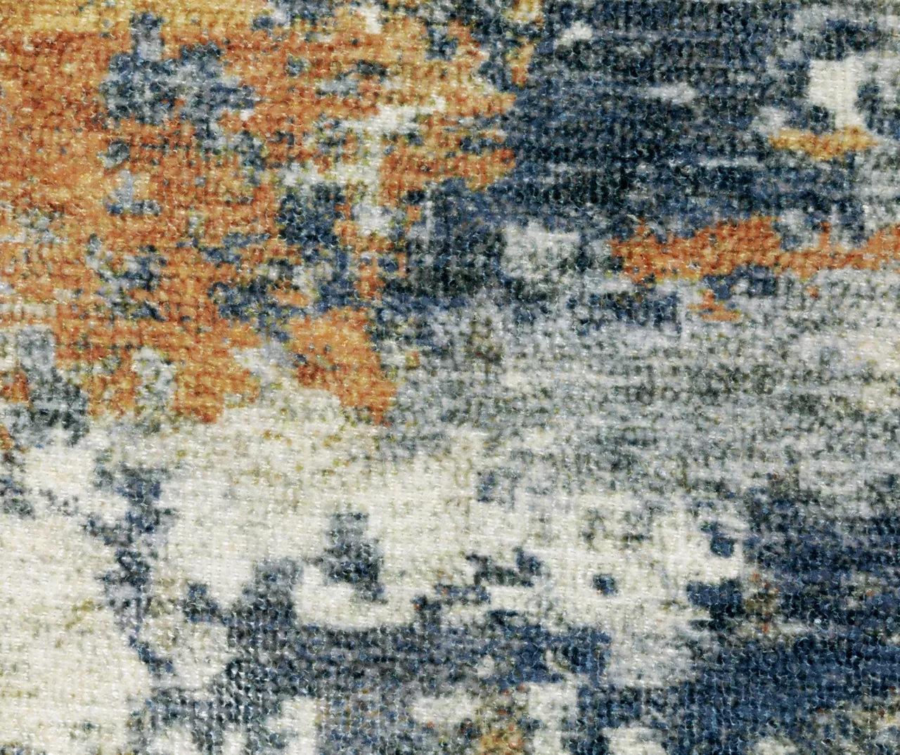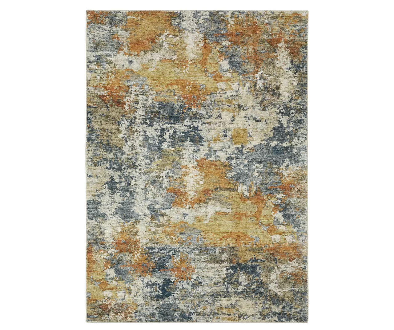 The Malay collection, machine-made from soft polyester, features an innovative printed base with non-slip backing that is perfect for high-traffic areas and family living spaces. With its low pile and intricate blanket stitch finish, this rug showcases a contemporary abstract design in rich gold, navy and ivory hues with a distressed look that effortlessly complements any room in your home.