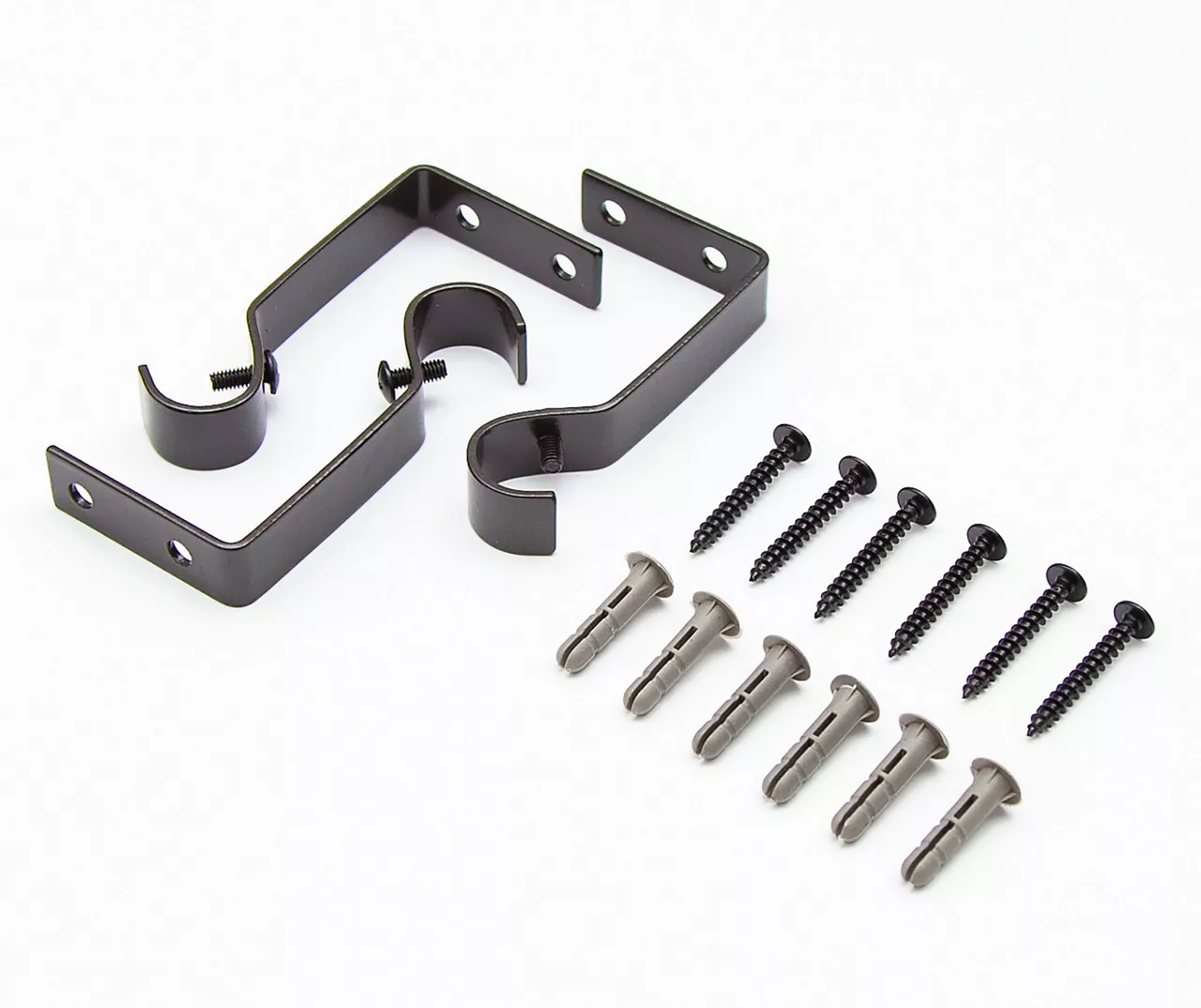 - Includes telescoping curtain rod with finials, 2 brackets, 1 center support, screws, drywall anchor and installation instructions