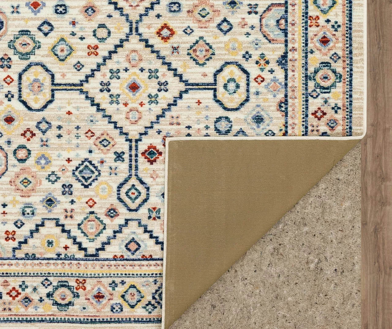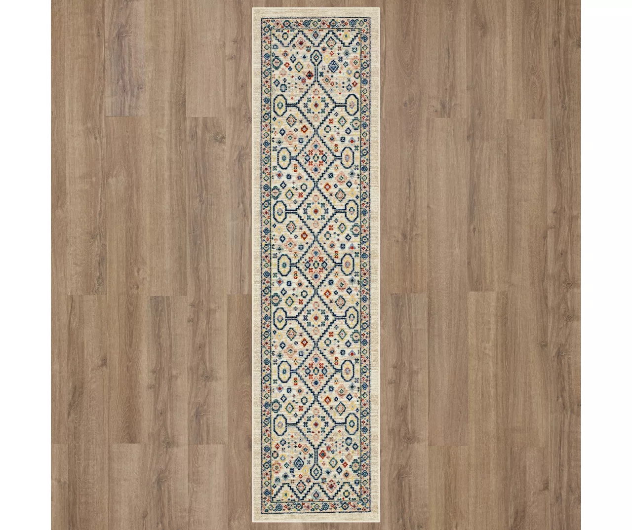 - Ornamental geometric design in a bold multi-color palette for a traditional look