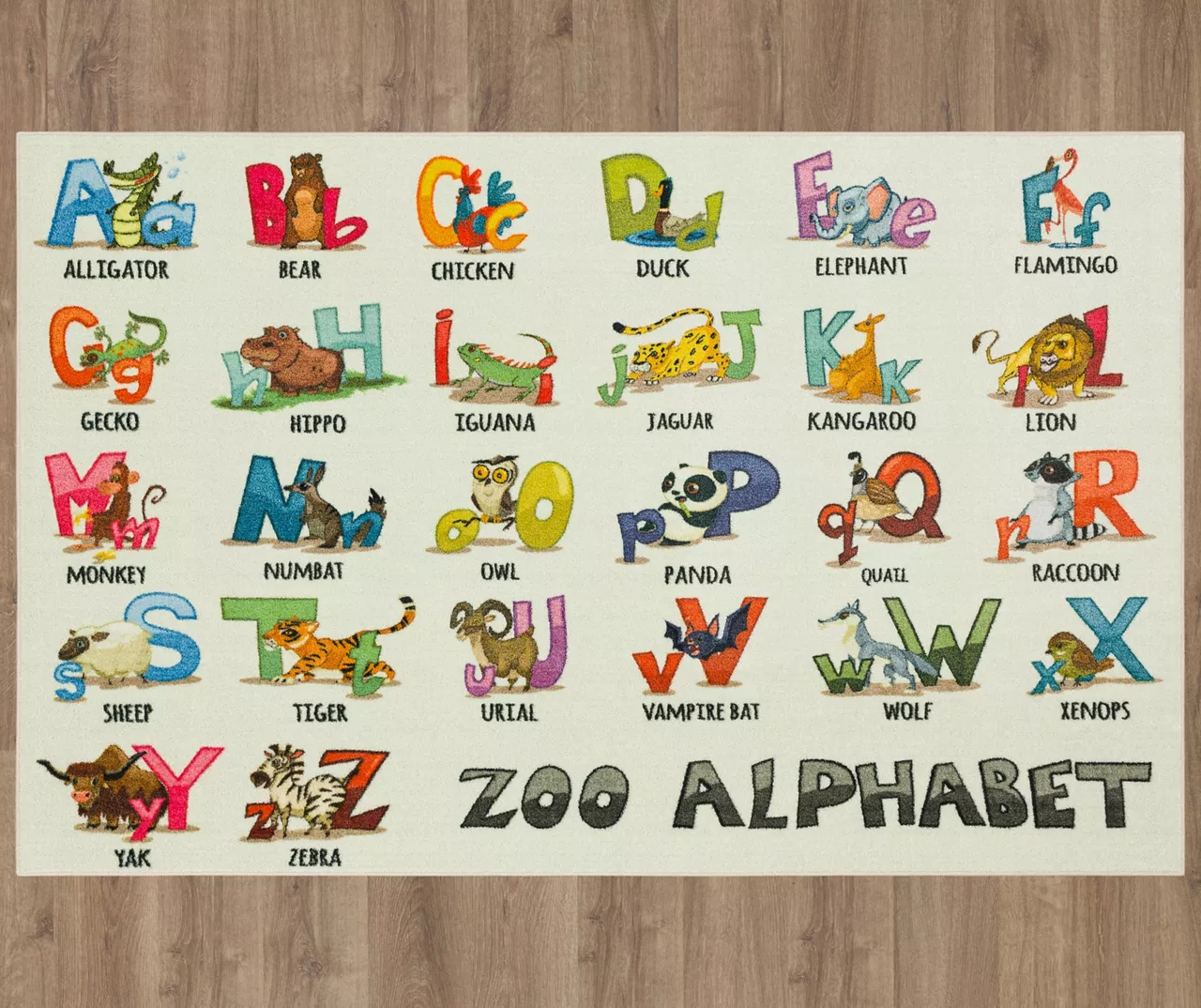 Encourage your little one to enjoy learning their letters with the colorful animal and letter design of Mohawk Home’s Alphabet Zoo area rug. Thoughtfully crafted in the U.S.A. utilizing Mohawk Home’s exclusive precision dye-injected printer, this rug is designed on a plush EverStrandâ„¢ tufted base made from premium recycled polyester. A non-skid latex backing helps to keep things in place, and the low pile is durably designed to easily work with doorways or furniture while withstanding everyday use.