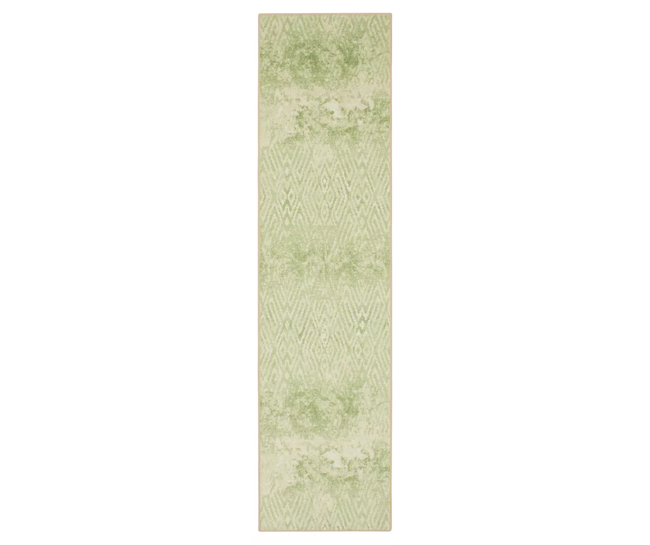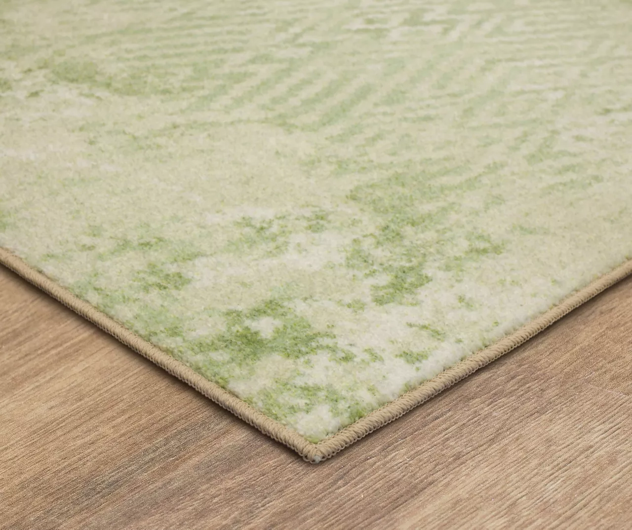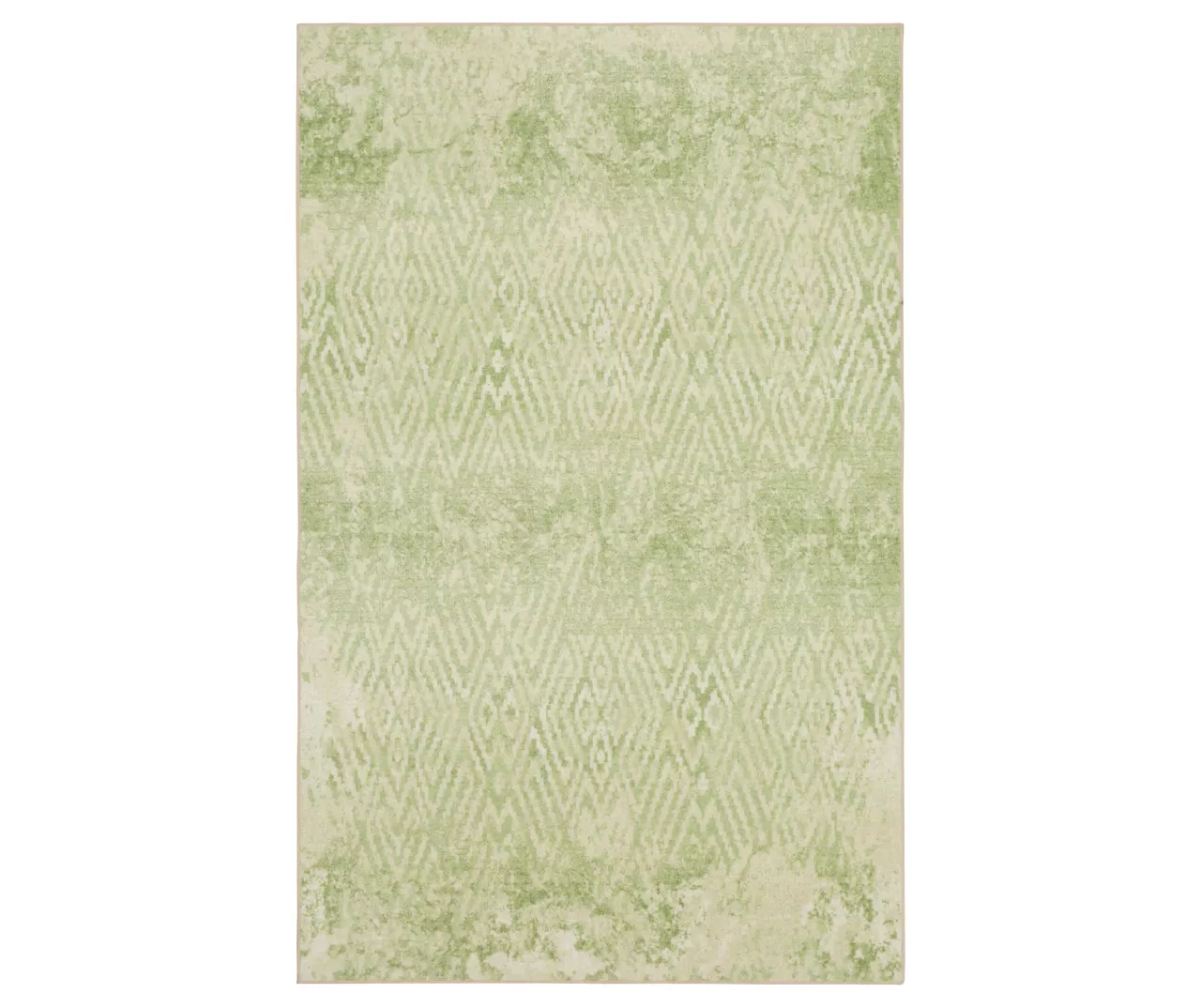 - A distressed geometric pattern in bright shades of green and white for a vintage boho look