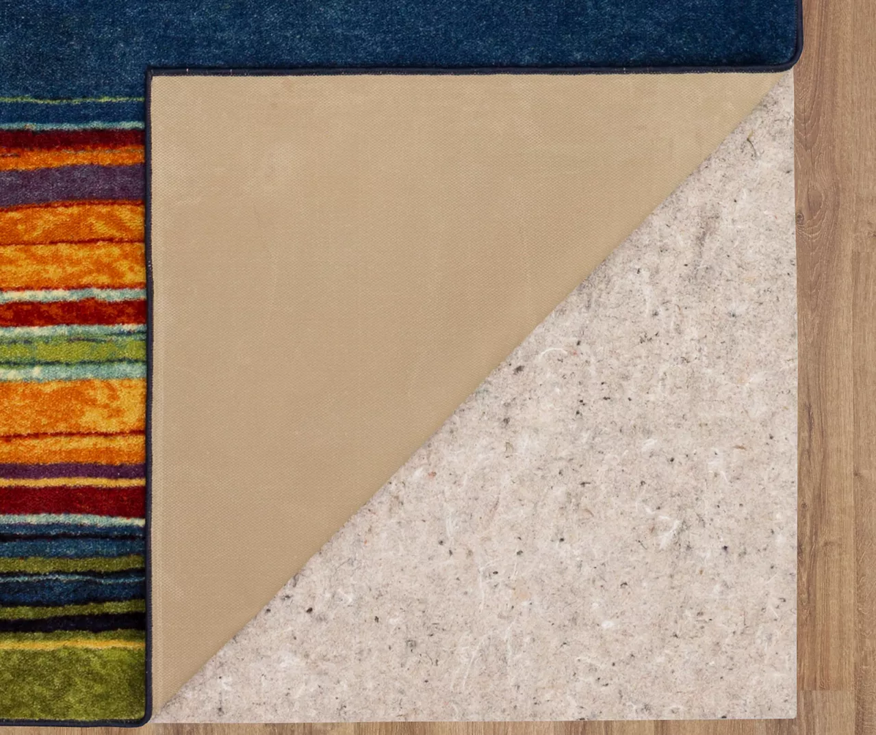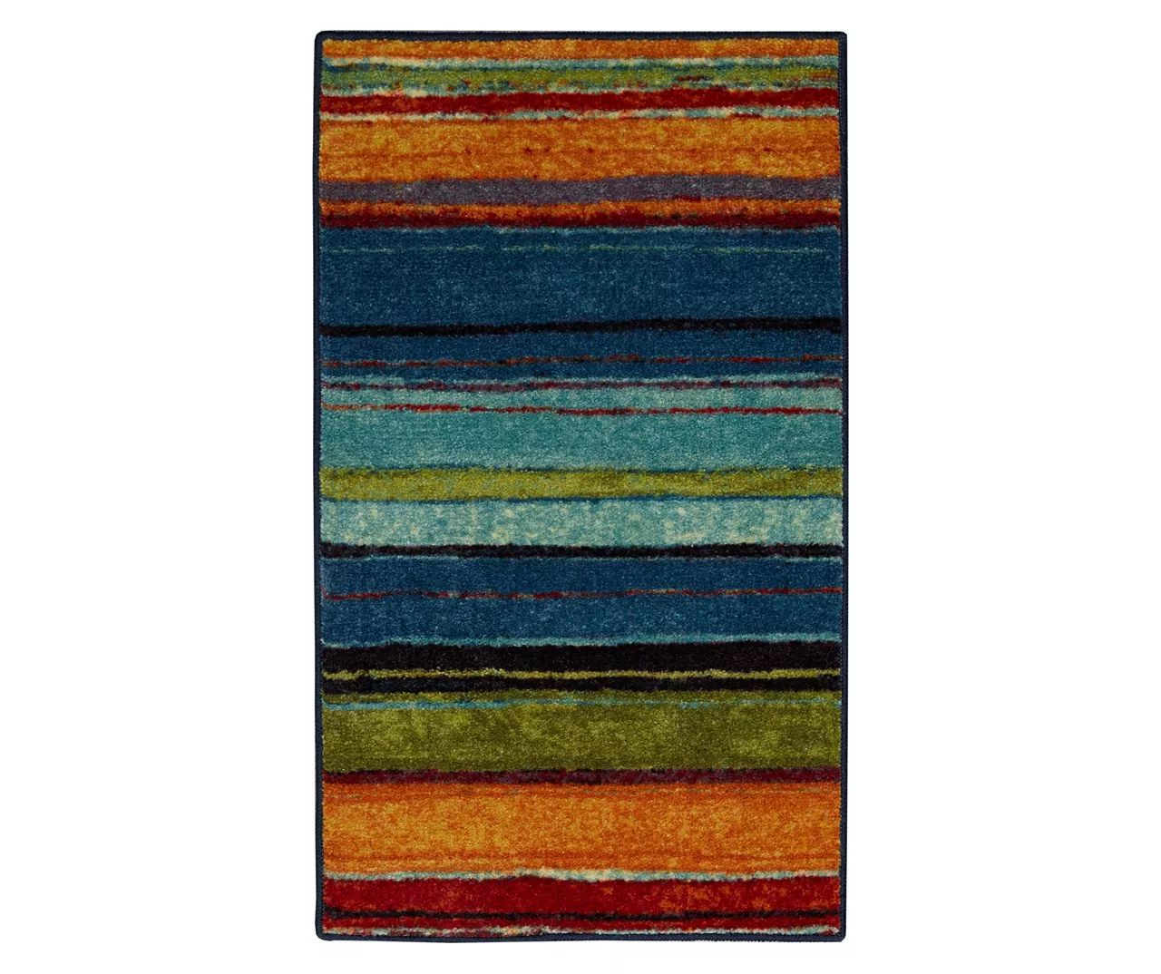 Saturated shades of blue, green, red, orange, yellow and purple form stripes across this lovely area rug from Mohawk Home. This transitional style features modern brushstroke-inspired stripes in bold contemporary color. It’s a beautiful addition for dining areas, kids spaces, bedrooms and more and it’s resistant to staining for improved durability in high-traffic areas.