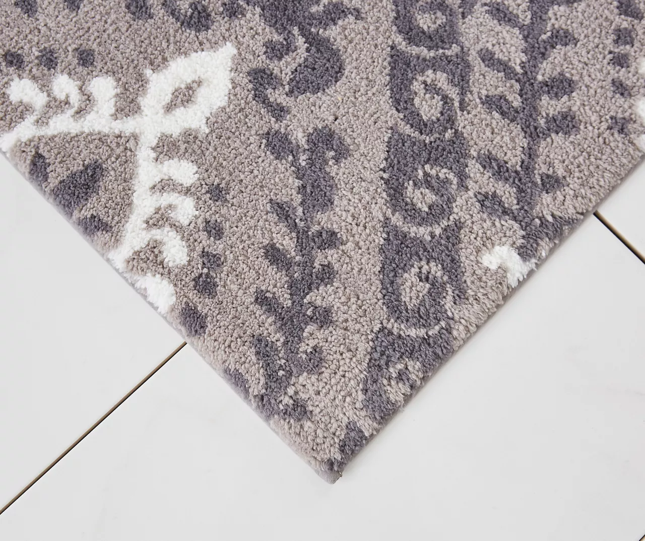A large arabesque pattern with intricate floral-style details lends modern botanical elegance to this Garden Path rug from Mohawk’s Horizon collection. The soft and plush polyester pile keeps feet comfy when you step out of the shower, and it’s machine wasable for easy care.