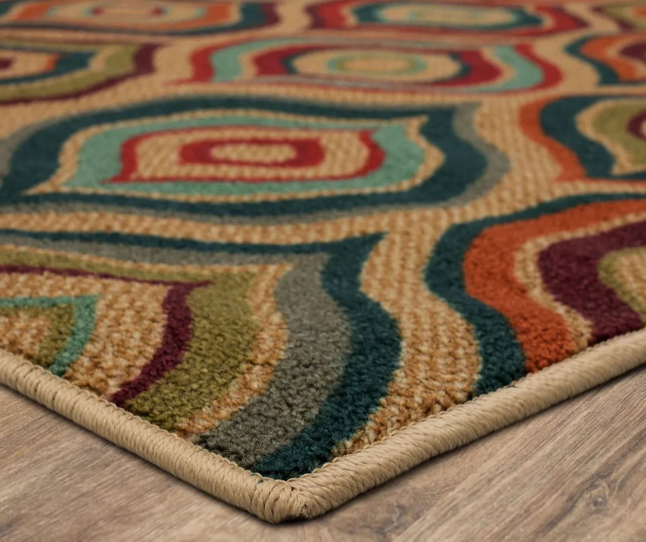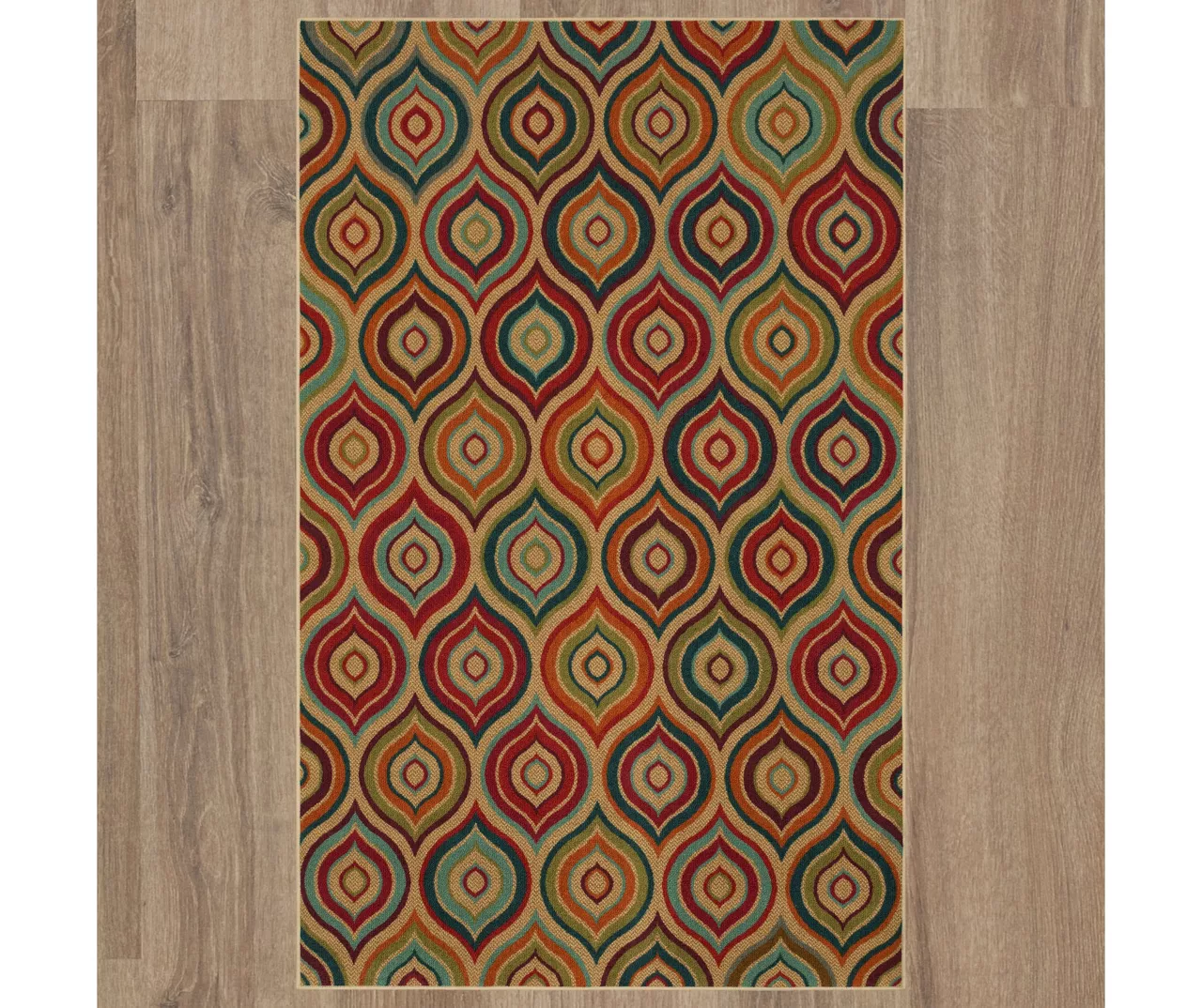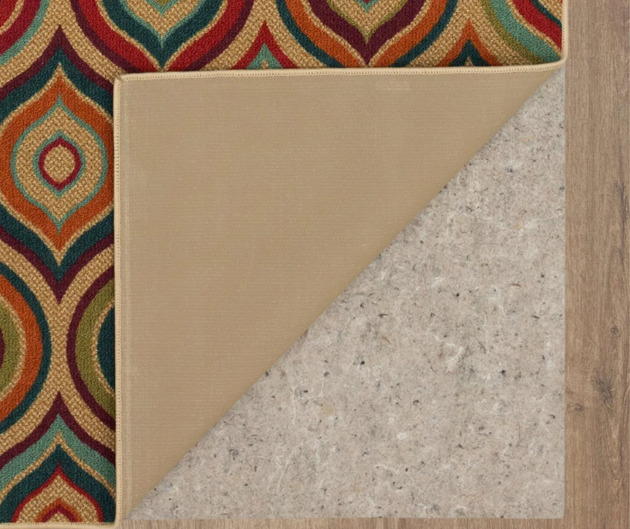The modern design of Mohawk’s Larache area rug features layered arabesque patterns, creating a fresh look of depth and dimension. A saturated palette in shades of ruby, teal, avocado green, rust orange and sand makes for a warm, radiant look in any space. The low pile is created with Mohawk’s premium wear-dated nylon fiber for a soft touch and dependable durability. This rug is sure to make an elegant addition to a bedroom or other living space and the non-skid latex backing helps to keep things in place.