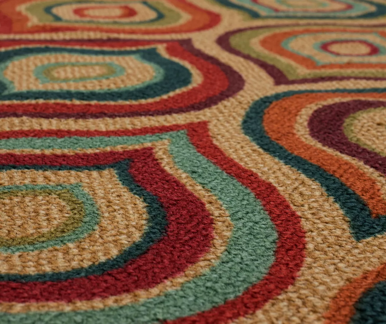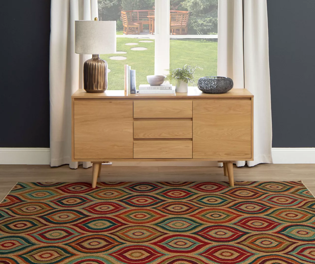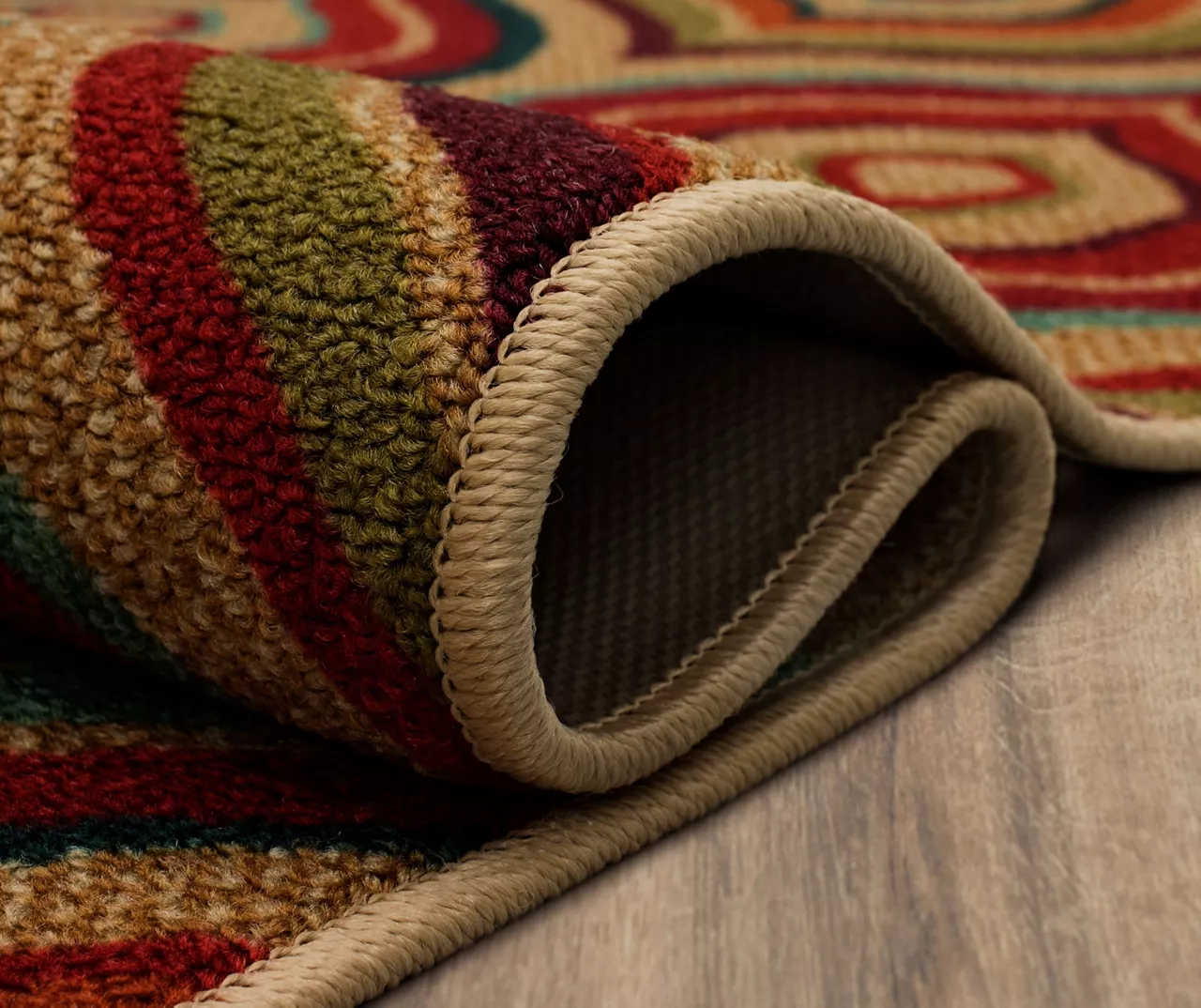 The modern design of Mohawk’s Larache area rug features layered arabesque patterns, creating a fresh look of depth and dimension. A saturated palette in shades of ruby, teal, avocado green, rust orange and sand makes for a warm, radiant look in any space. The low pile is created with Mohawk’s premium wear-dated nylon fiber for a soft touch and dependable durability. This rug is sure to make an elegant addition to a bedroom or other living space and the non-skid latex backing helps to keep things in place.