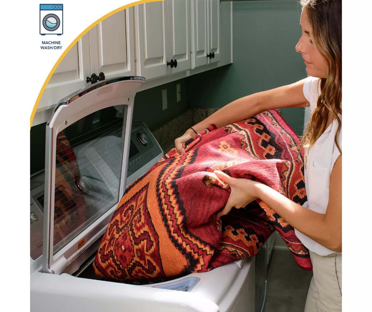 - Exclusive patent pending rug has a non-slip backing (no separate pad needed)