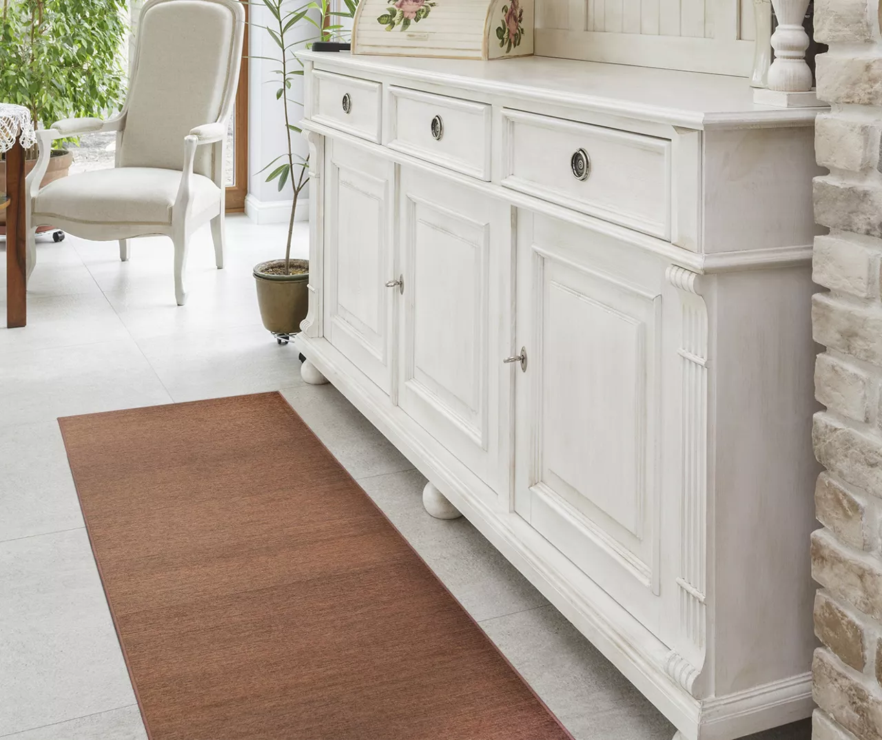 This warm espresso-colored rug is the perfect addition to any modern interior. Featuring a bold flatwoven surface, this foundational piece of decor is perfect for all those high traffic areas in your home, like your kitchen, entryway, hallway, living, bed or bathroom. Protect your floors from spills and scratches and wash away germs with a full line of no-fuss rugs. My Magic Carpet is an eco-friendly alternative to traditional rugs. This rug is made of non-allergenic, stain-resistant microfiber polyester, with a waterproof inner liner and a non-slip backing.