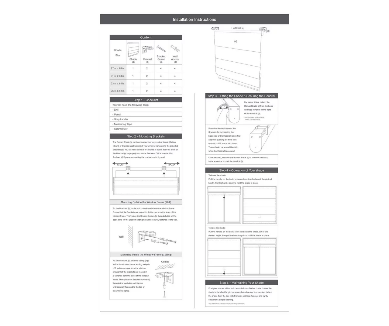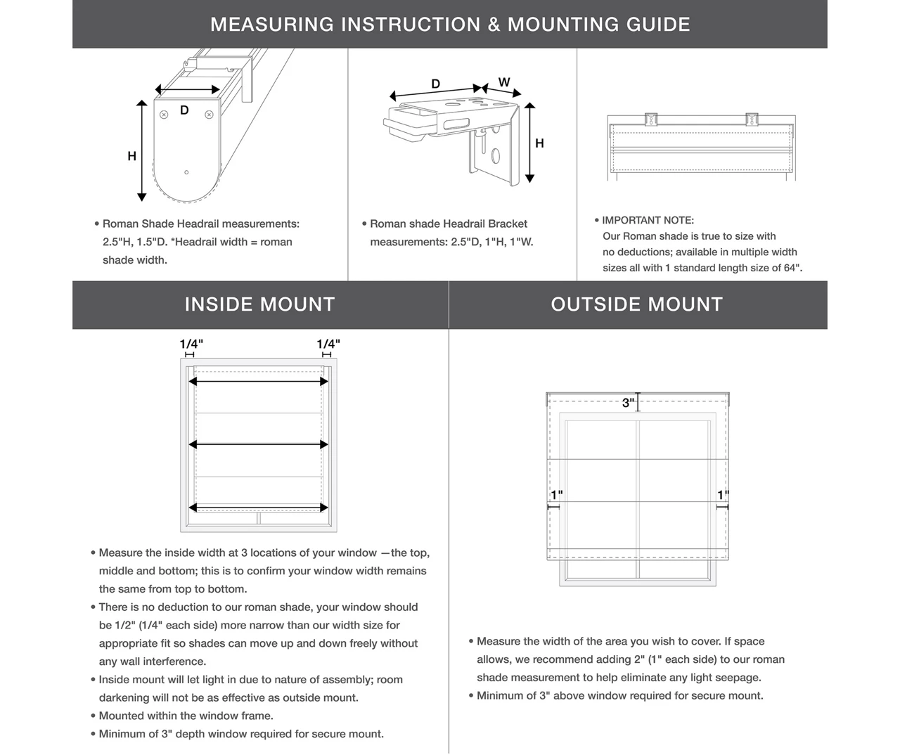 - For outside mount, please choose size with at least 2″ added onto your actual window width for maximum coverage