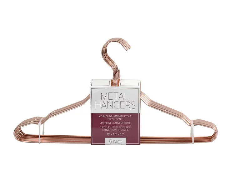Organizing your closet is a cinch with this pack of durable metal hangers. The sleek rose gold design looks great in a closet or laundry room as they display your favorite tops, blouses and tanks.