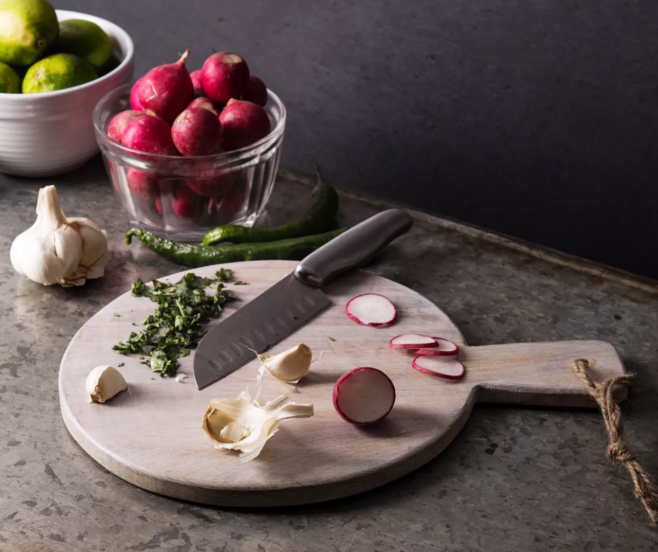 - Round cutting board with handle