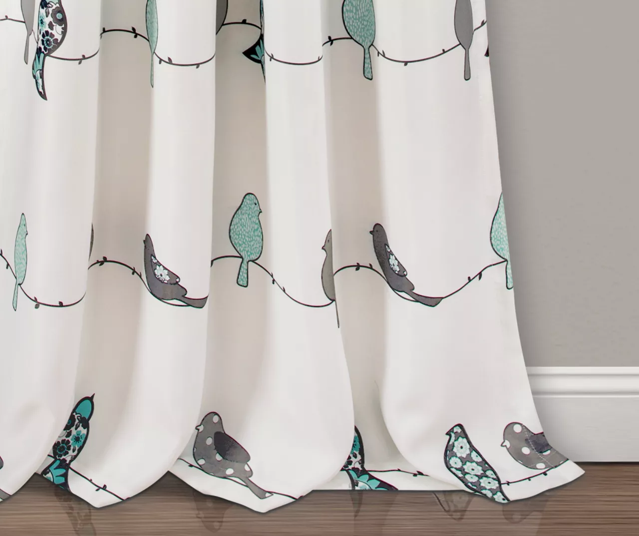 - Room-darkening curtain panels help filter out sunlight and provide privacy