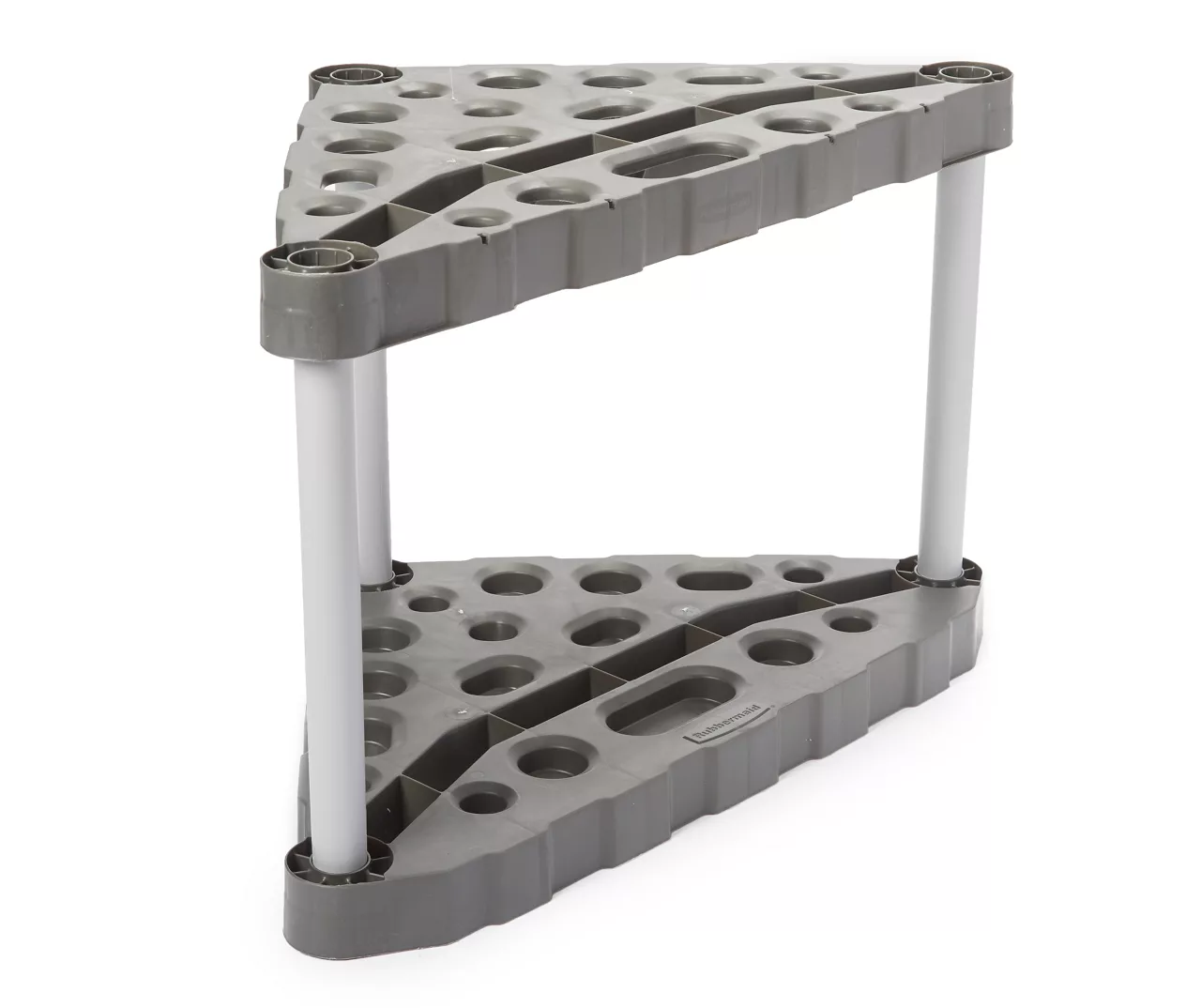 This tool tower from Rubbermaid maximizes available space by fitting into corners, and it can hold up to 30 tools. Its large base allows for greater stability, and it can be anchored to a wall for additional safety. The tool-free assembly makes putting this tower together a cinch, and its weather-resistant design will not rust, dent, rot or peel.
