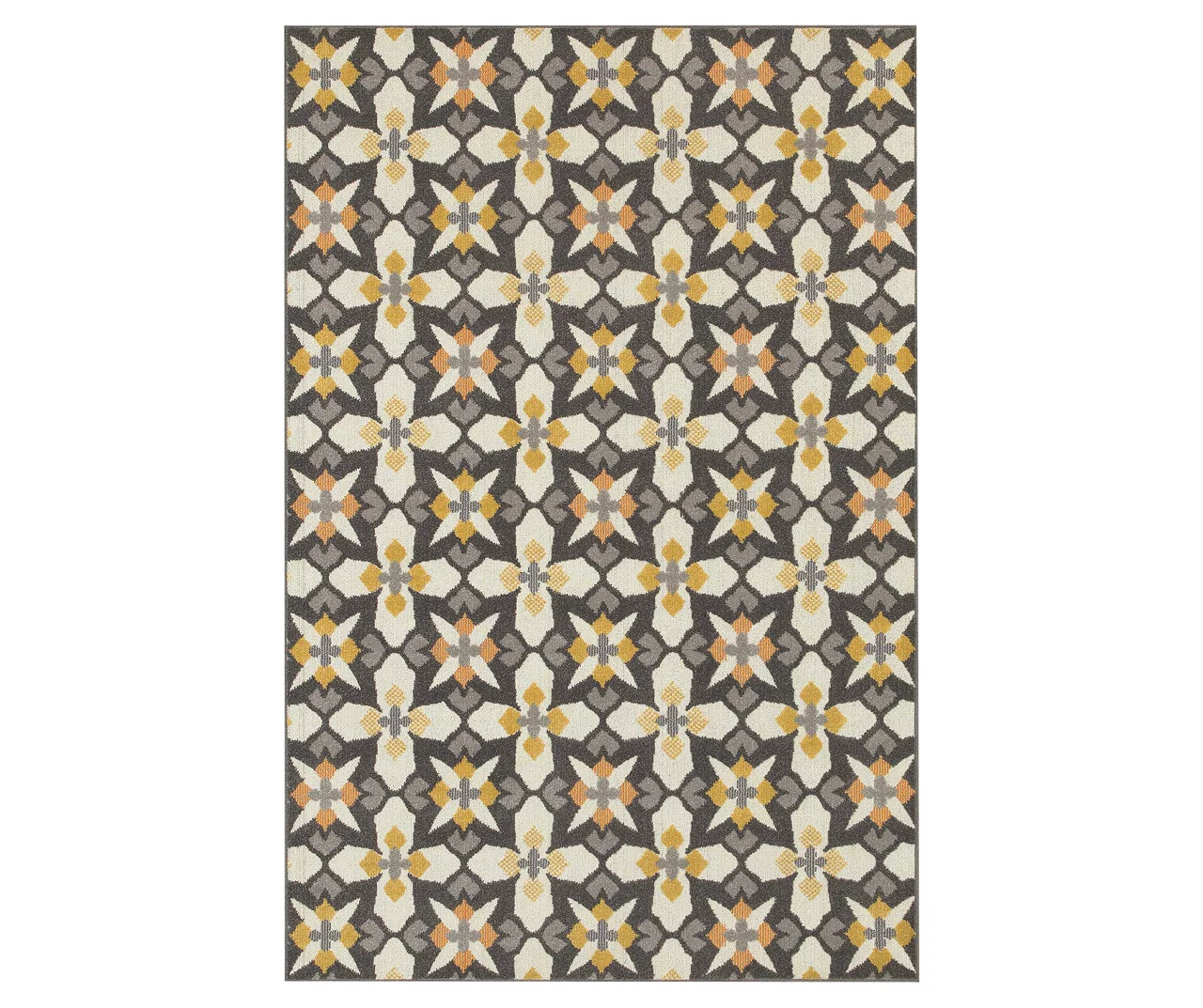 - The colors in this rug are gray, soft gold, ivory, and persimmon
