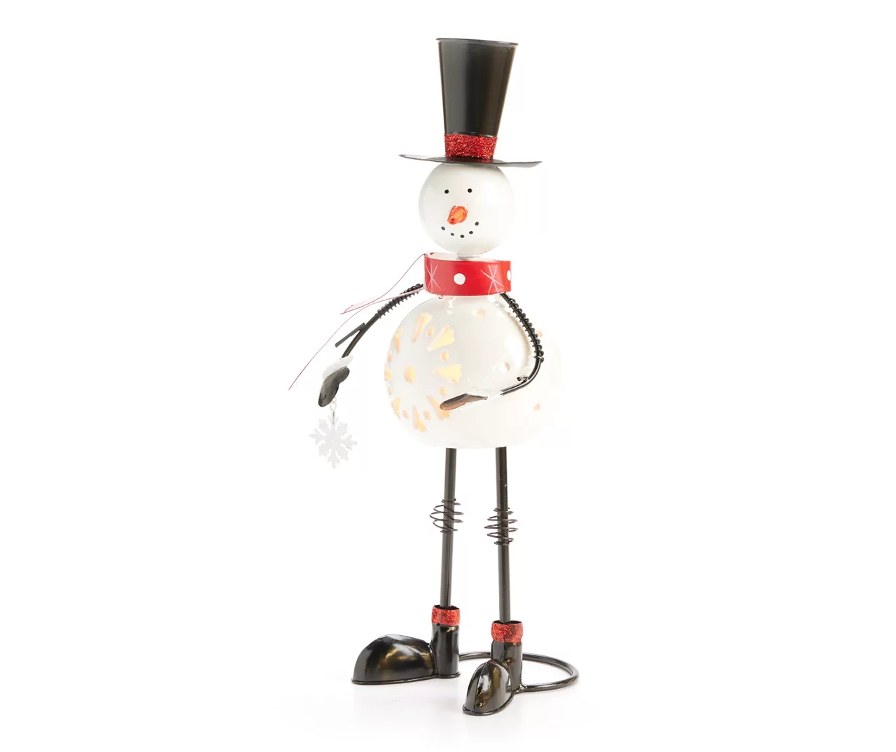 Bring a whimsical look to your winter décor using this adorable candle holder! A cartoon-like snowman holds a snowflake as cut-out star shapes throughout his body allows the light of your chosen flameless LED candle to escape through. This enchanting holder is a charming addition to a mantel, table or shelf.