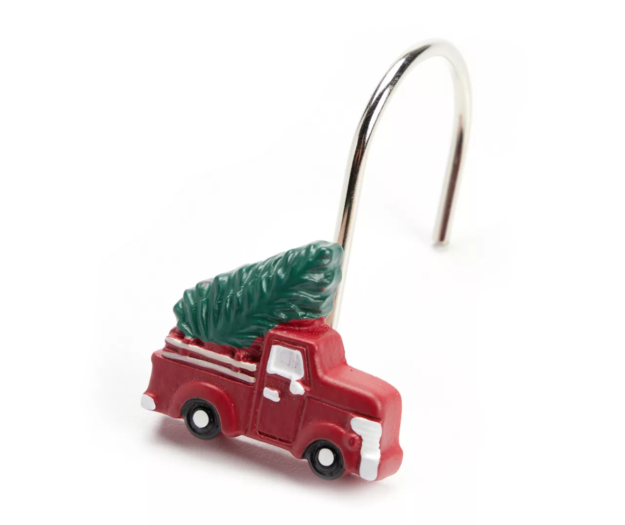 Transform your bathroom into a festive holiday retreat with the retro holiday truck theme of this shower curtain set from the Santa’s Workshop collection. Immerse yourself in the joy of the season every time you step into your shower, surrounded by enchanting winter motifs with matching resin hooks.